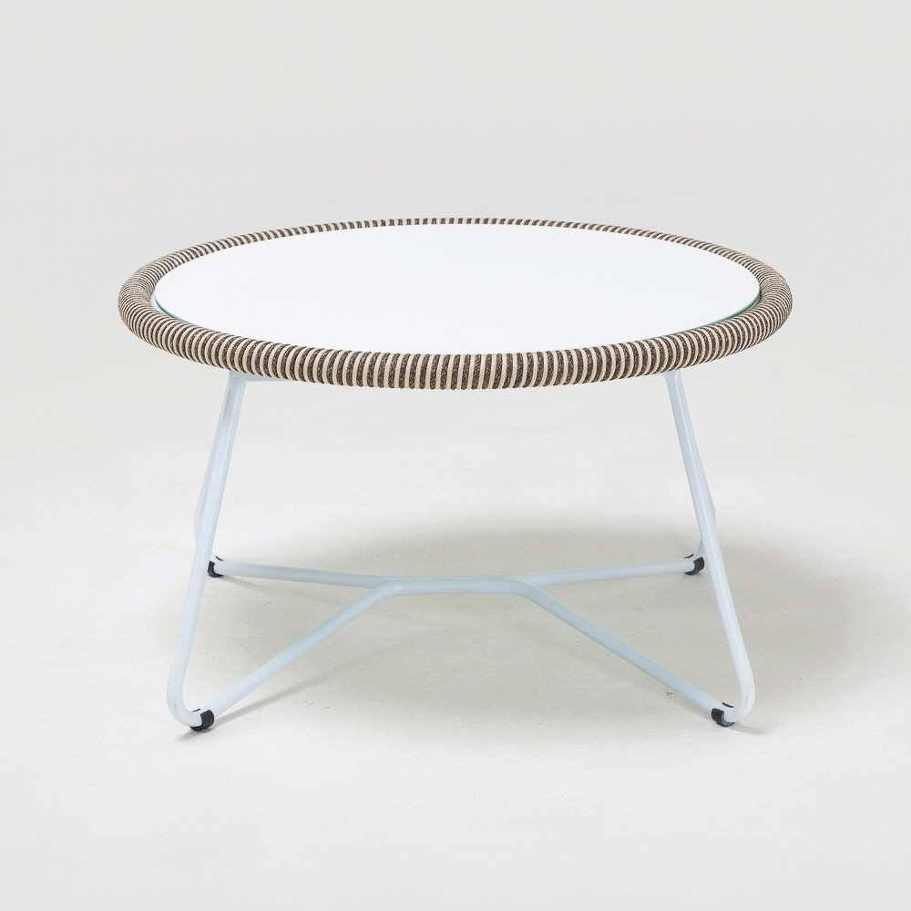 tissage CORDA en oléfine/PP avec une finition bicolore blanc perle et cappuccino et un plateau en