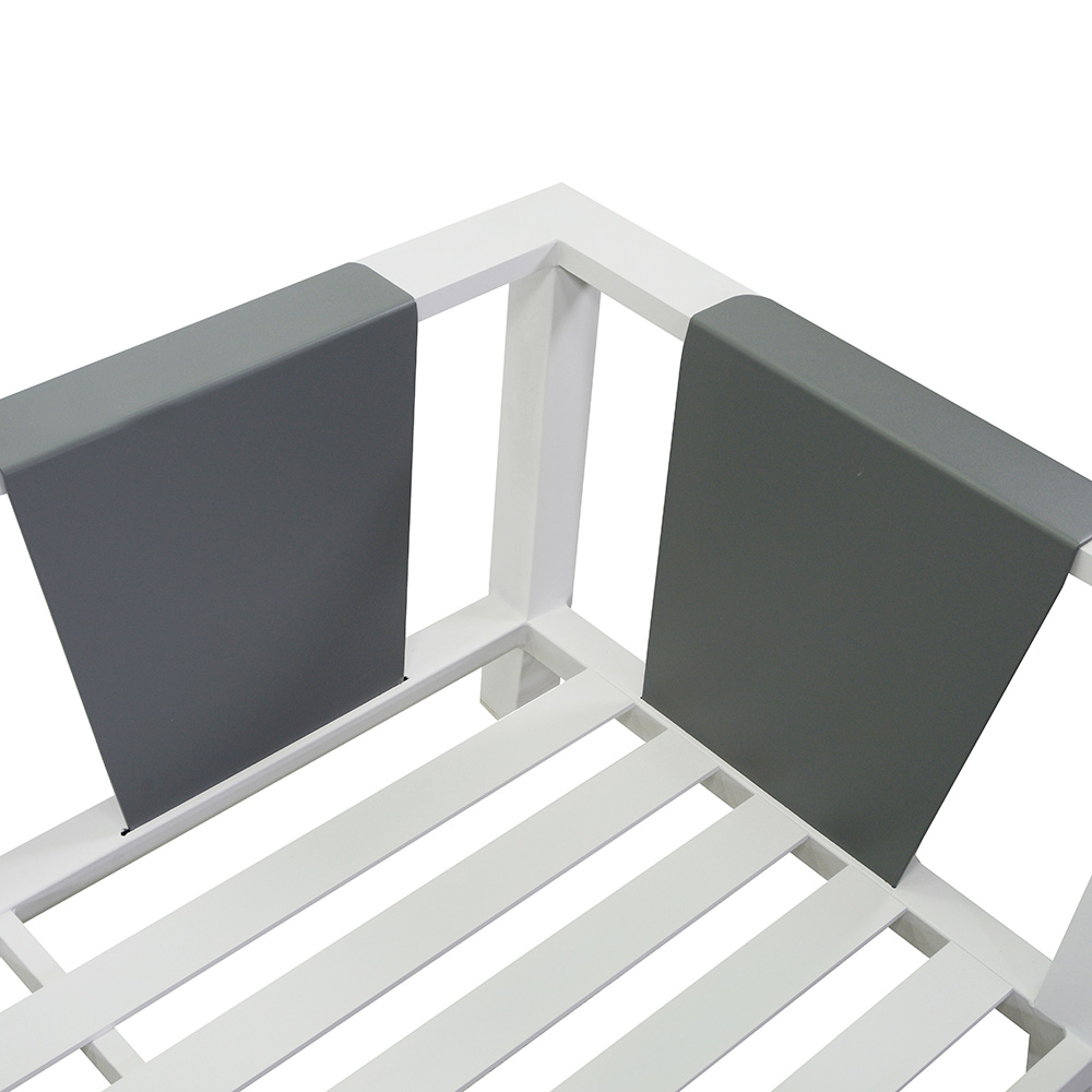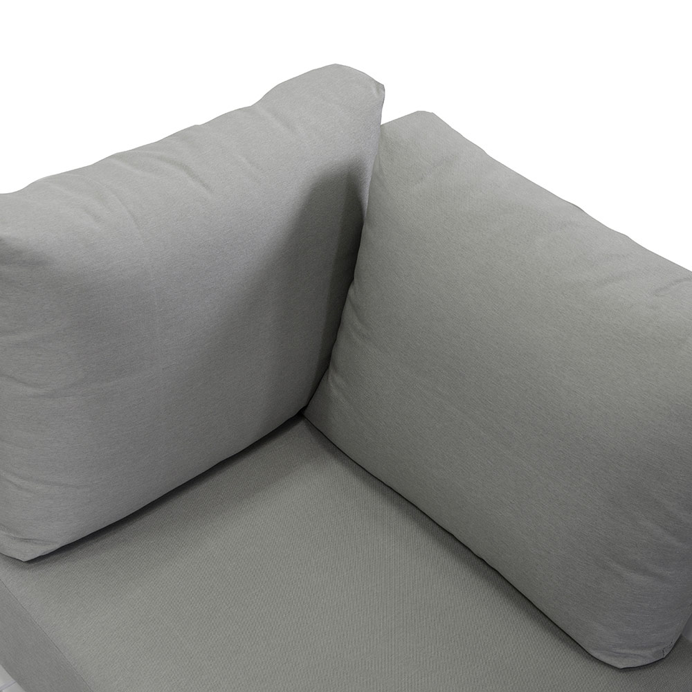 Cet ensemble salon est doté d'une cadre en aluminium revêtue de poudre blanche , qui non seulement ajoute une touche d'élégance moderne , mais assure également la durabilité et la résistance aux intempéries . Les coussins gris clair, en tissu hydrofuge et démontable, offrent un confort inégalable, rendant cet ensemble idéal pour de longues périodes de détente en extérieur.