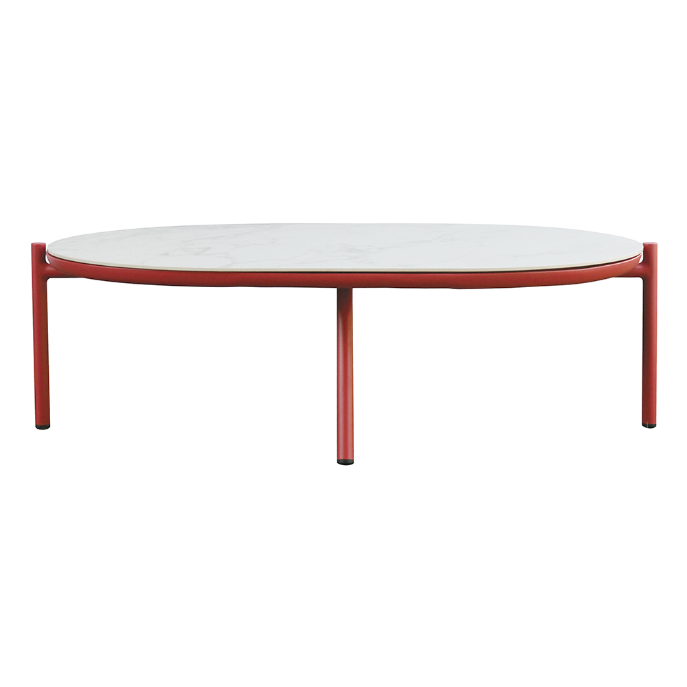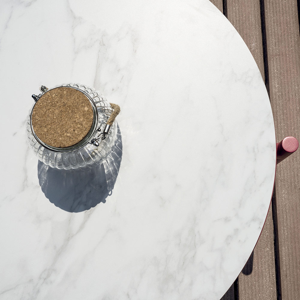 1 table basse : base en aluminium blanc et plateau effet grès.