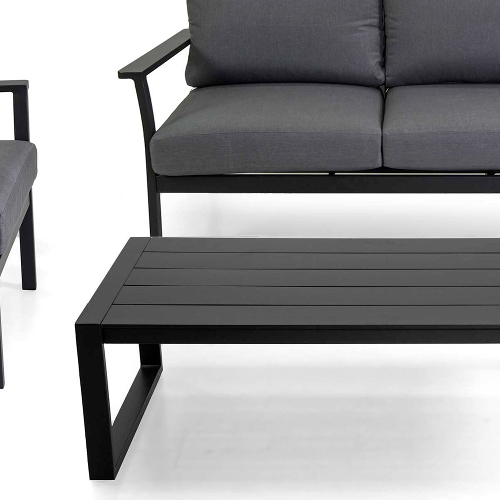 Cet ensemble moderne de salon de jardin est un support élégant et sophistiqué pour tout espace extérieur. Le design minimaliste, caractérisé par des lignes épurées et une couleur anthracite, transmet un sentiment de style contemporain et d'élégance discrète.