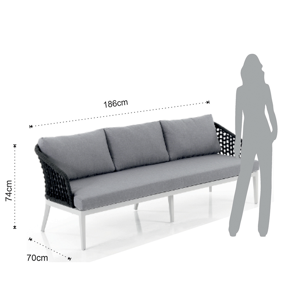 Dimensions:- canapé : longueur : 186cm x profondeur : 70cm x hauteur : 74cm