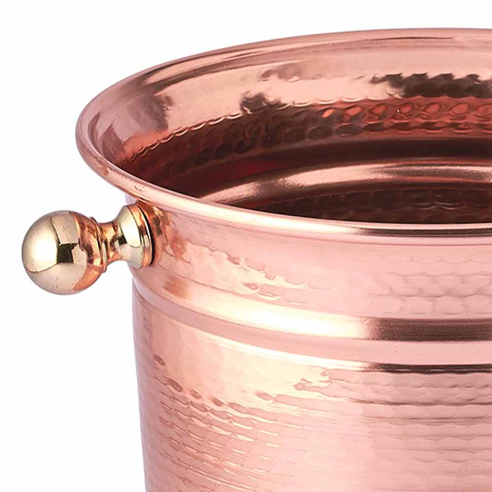 Seau à glace design pour vin en cuivre martelé poli ou vert pompéen, fabriqué en Italie.