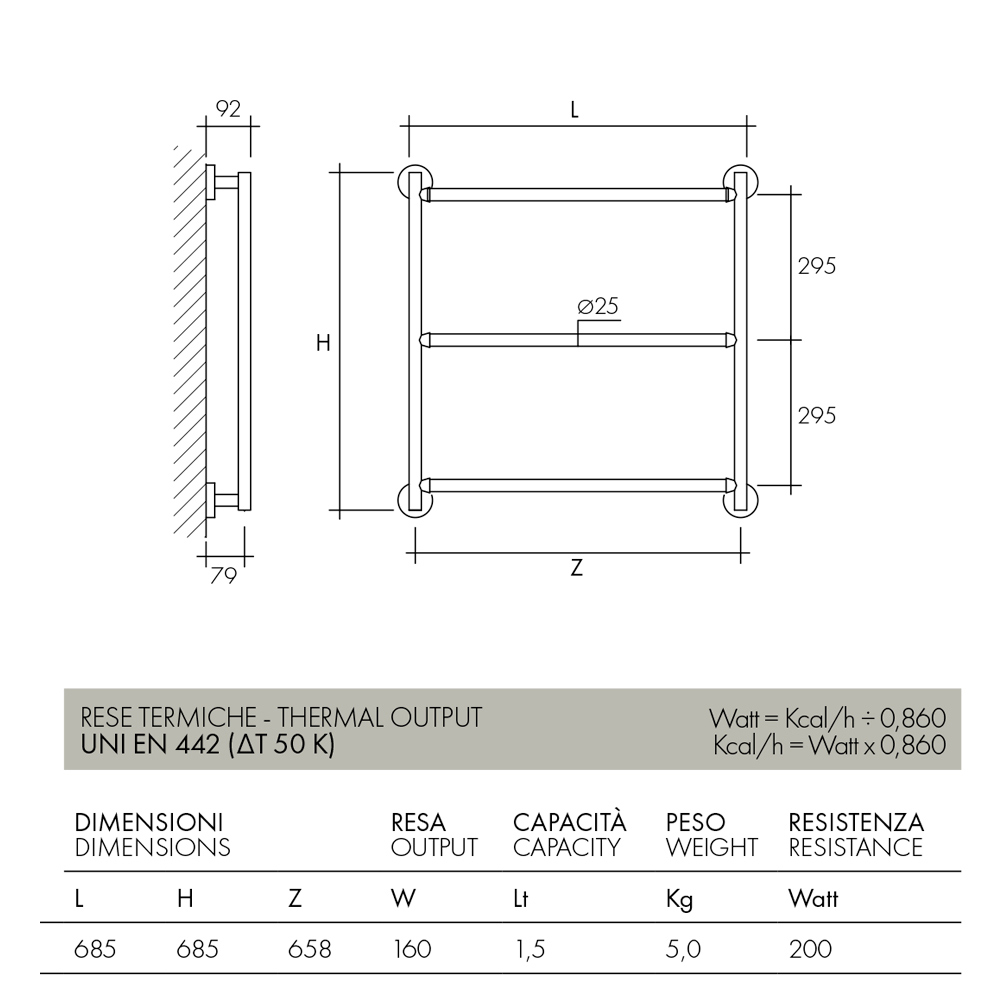 - Fourni avec résistance électrique standard en classe II avec câble électrique et prise Schuko