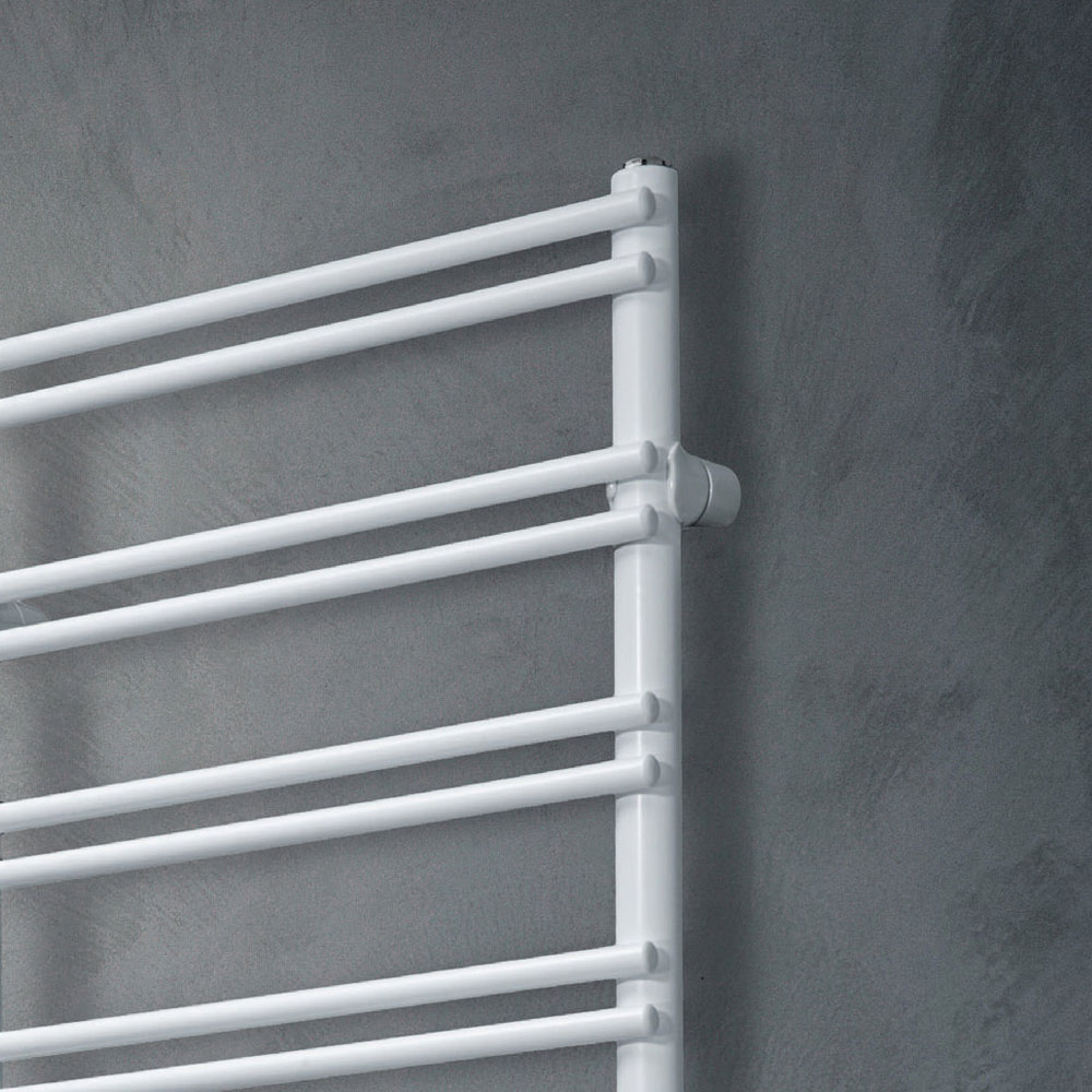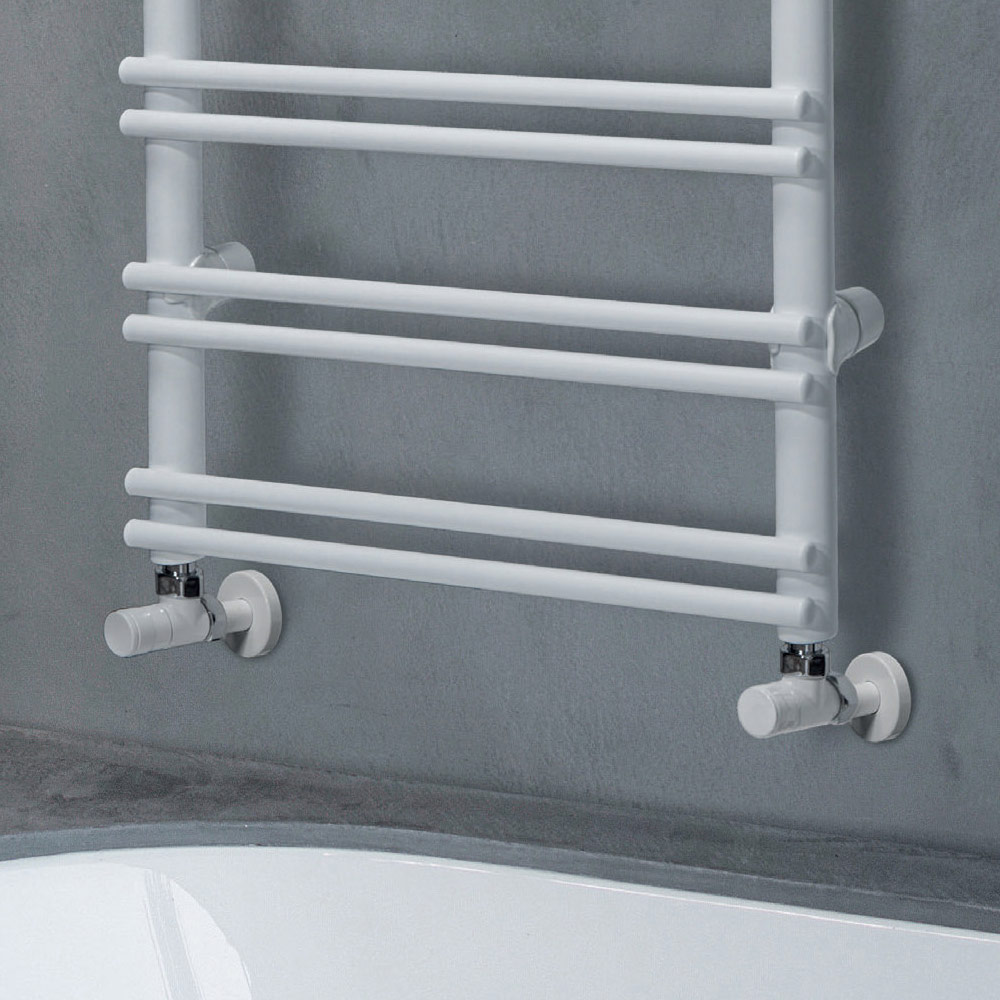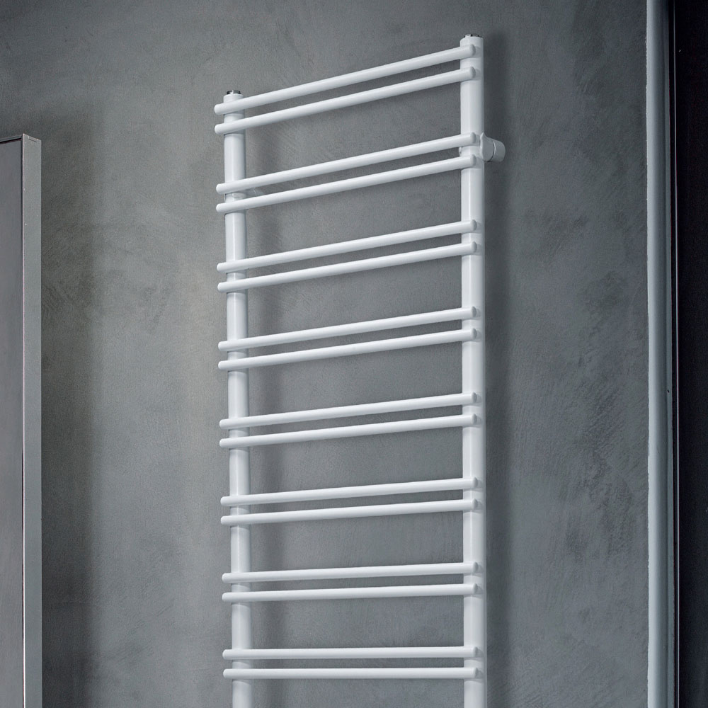 Sèche-serviettes hydraulique en acier au carbonefinition blanc signalisation composé d'une série d' éléments horizontaux d'un diamètre de 1,6 cm soudés sur des collecteurs verticaux d'un diamètre de 3,5 cm. Entièrement fabriqué en Italie avec kit de fixation murale, purgeur et bouchon aveugle inclus . Ce produit allie technologie et présence formelle, devenant un véritable objet de design , source de bien-être et de plaisir esthétique . C'est bien plus qu'une simple source de chaleur, c'est un meuble capable de personnaliser et de compléter les environnements. Le design et la fonctionnalité sont équilibrés pour un élément qui est non seulement beau mais aussi utilisable et fonctionnel.
