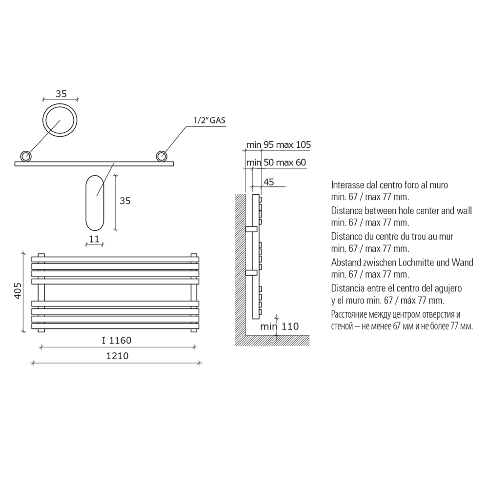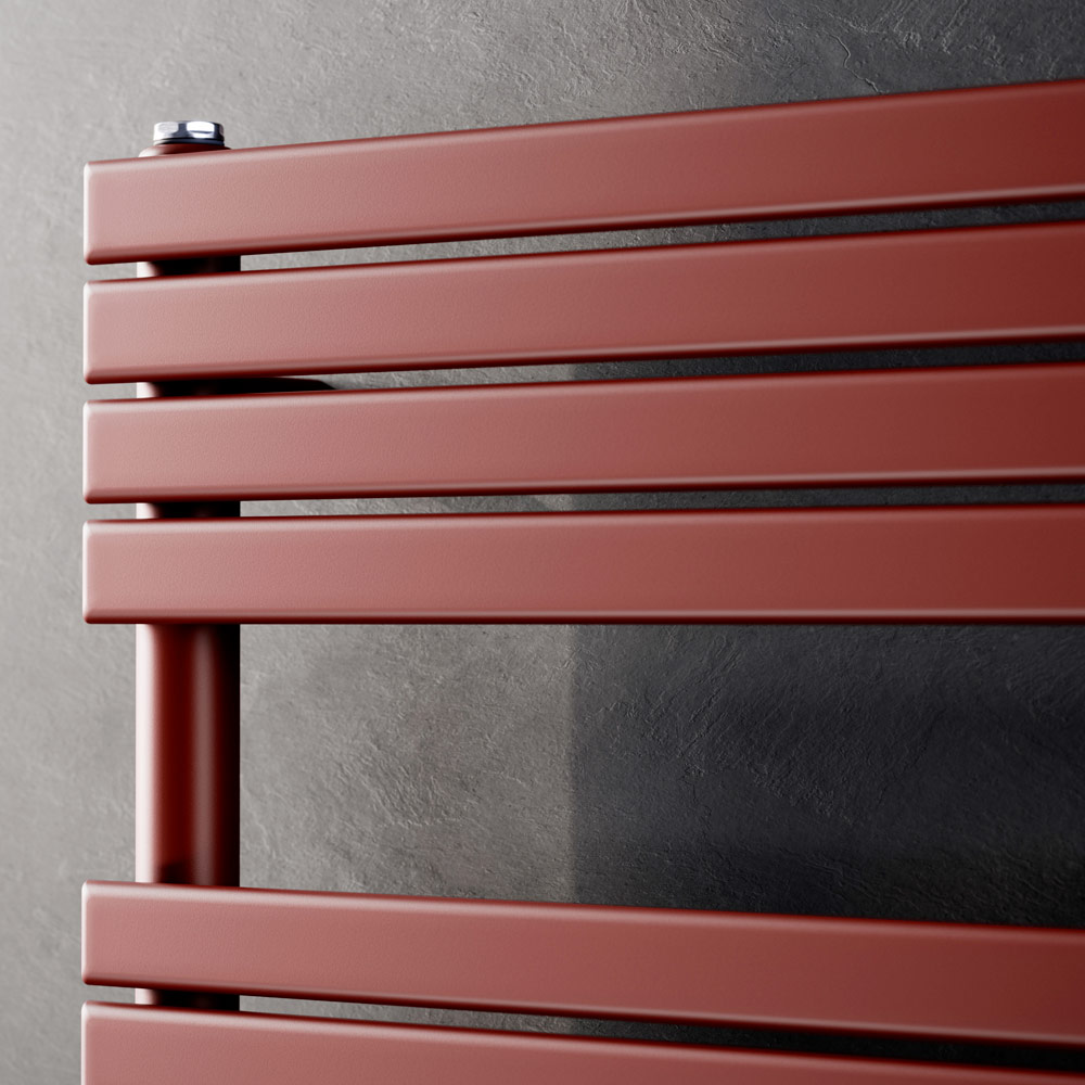 Sèche-serviettes hydraulique en acier au carbone avec finition rouille mate, composé de tubes plats horizontaux 35x11 mm et de collecteurs de diamètre 35 mm, entièrement fabriqué en Italie.