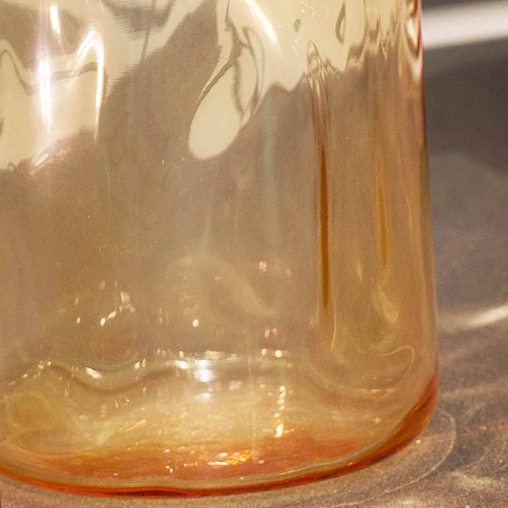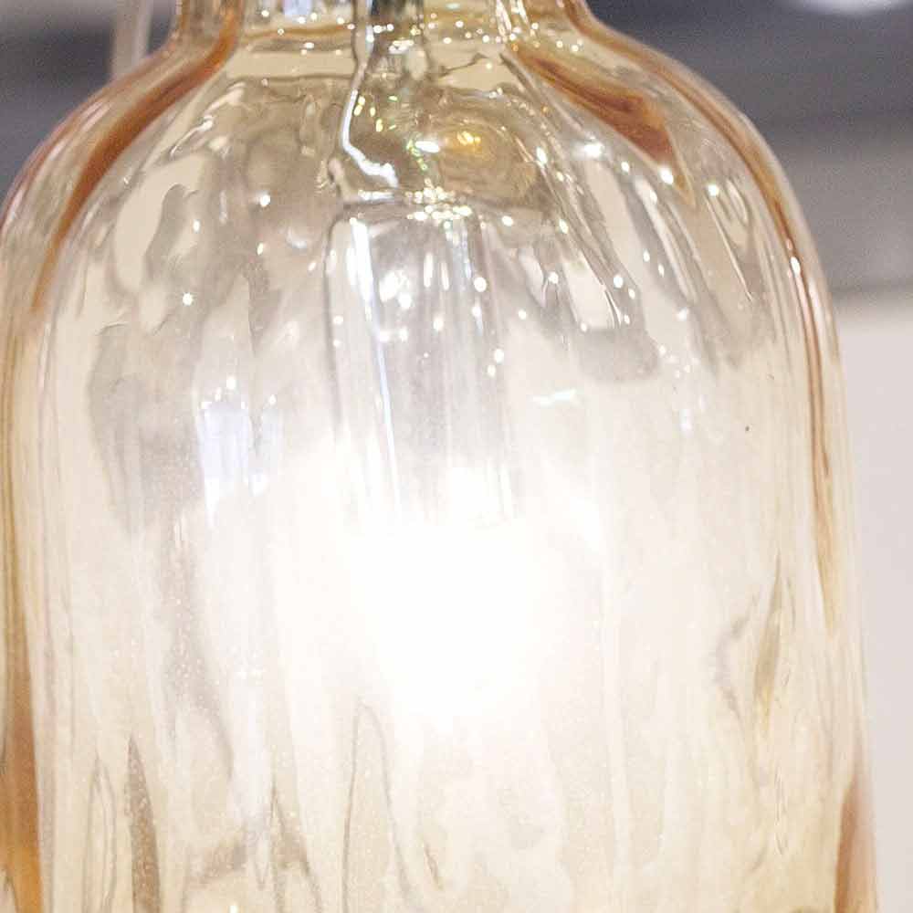 Selene Bossa Nova lampe de table Ø10 H 26 cm, verre soufflé ambra, faite à la main Bossa Nova est une collection lumineuse composée principalement par 3 bouteilles en verre soufflé avec le choix de plusieurs couleurs et dimensions, lesquelles produisent une jolie lumière.