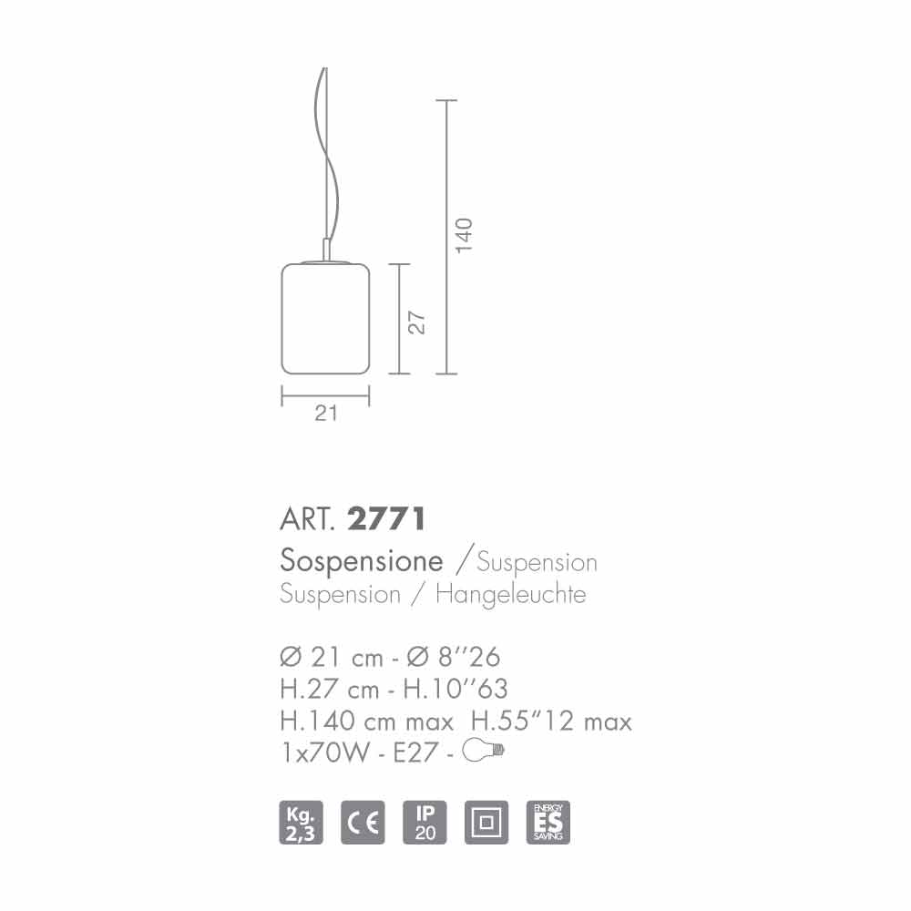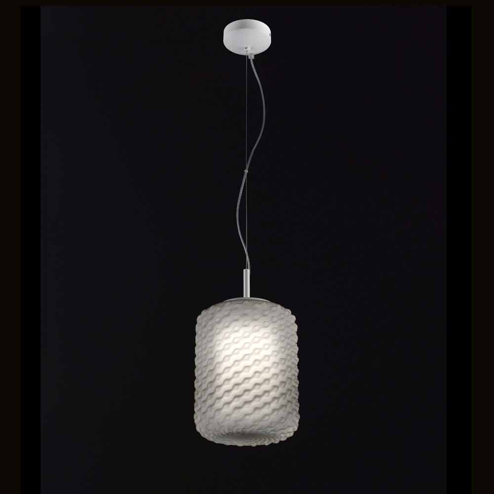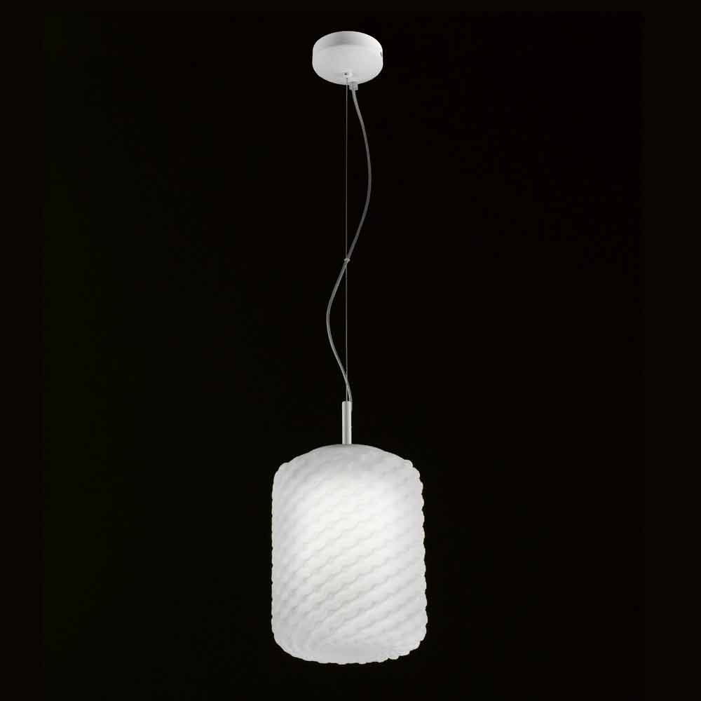 Selene Domino lampe suspendue en verre soufflé Ø21 H 27/140cm, made in iItaly Domino est une collection de lampes en verre soufflé de lavoration alvéolaire en relief qui embellit le verre. L' abat-jour peut être cylindrique en deux mesures et sphérique dans une, en plus sont disponibles 3 variantes de couleurs: blanc, ambre et fumé; prédisposée pour 1 ampoule de 70W E27