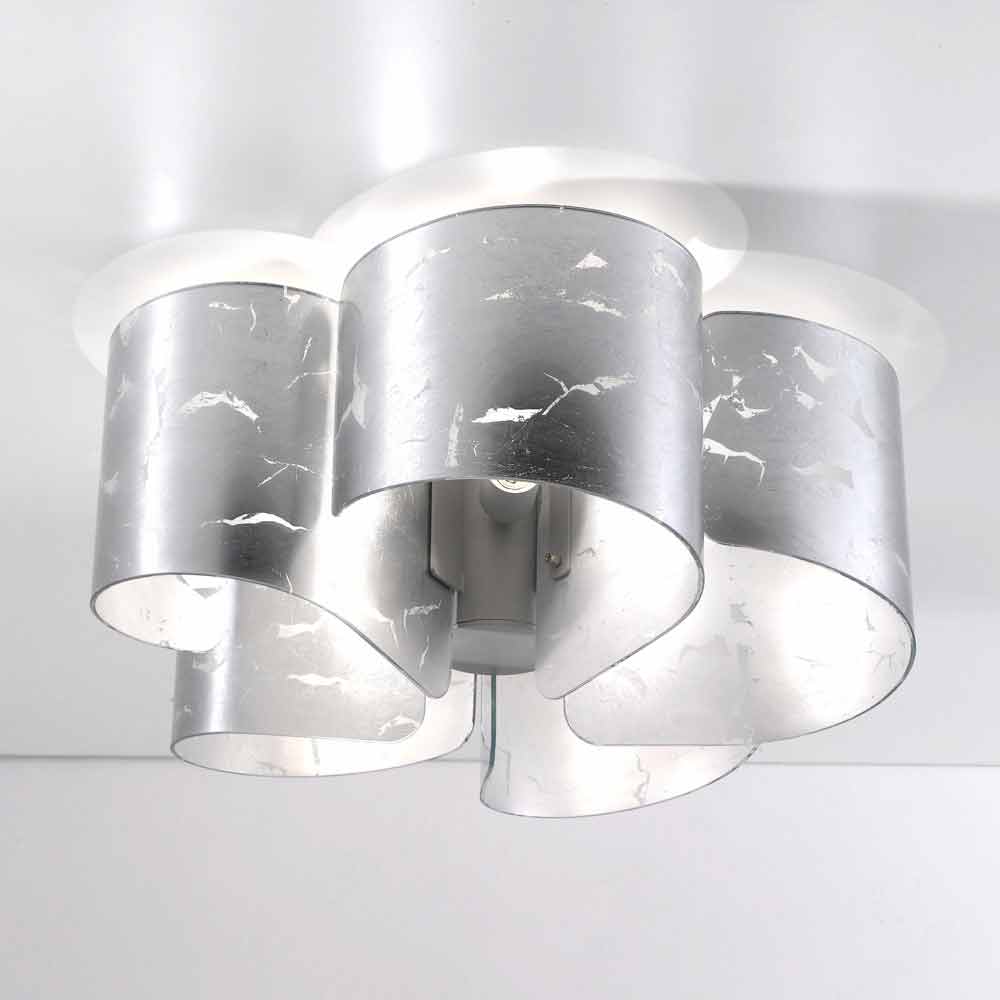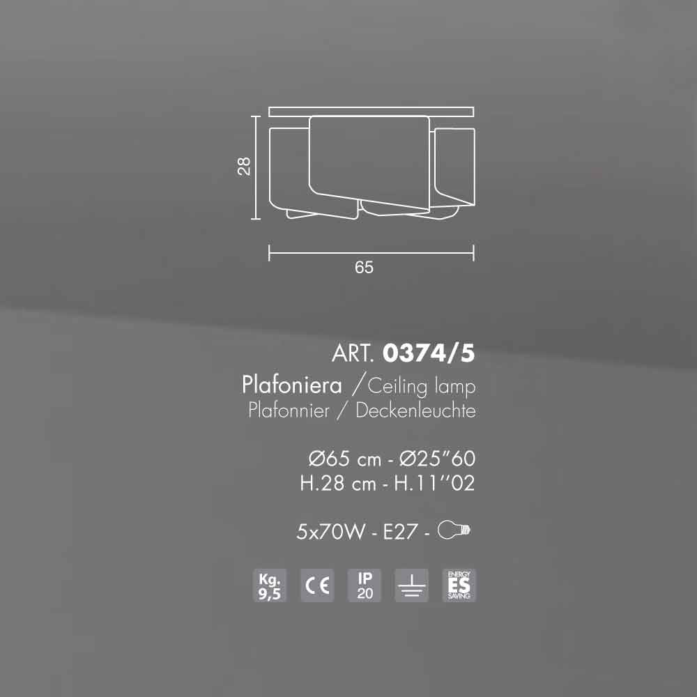 Selene Papiro plafonier en cristal moderne Ø65 H 28cm, made in Italy Papiro est une collection incredible, qui reccueille touts les types de lampes articulées dans des différentes variantes de forme, dimension et numéro des sources de lumière. L'abat-jour est en cristal très claire et disponible en plusieurs finitions. Établie pour 5 ampoules E27 70W (exclues)