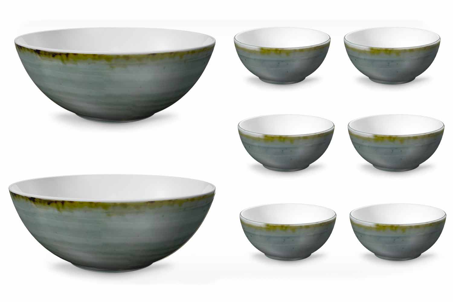 Le service comprend: - 6 bols 9 xh 4 cm - n.2 bols 23 xh 9 cm
