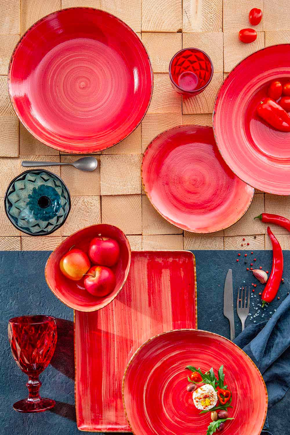 rouge piment : une couleur épicée et fascinante capable de rehausser les lignes douces et persuasives des plats. Un rouge attrayant et profond pour des touches individuelles irrésistibles au service.