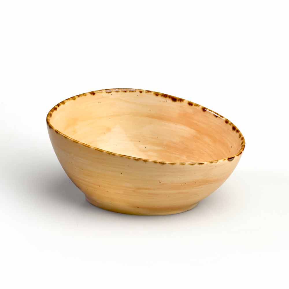 Originalité : les formes irrégulières, les décorations aux coups de pinceau imprécis et avec un effet moucheté fini et peint à la main et le bord vieilli, mettent en valeur le stylerustique et terreux de la collection. Chaque différence entre une pièce et une autre doit être considérée comme une caractéristique supplémentaire de valeur et de personnalité, ce qui rend chaque pièce unique.
