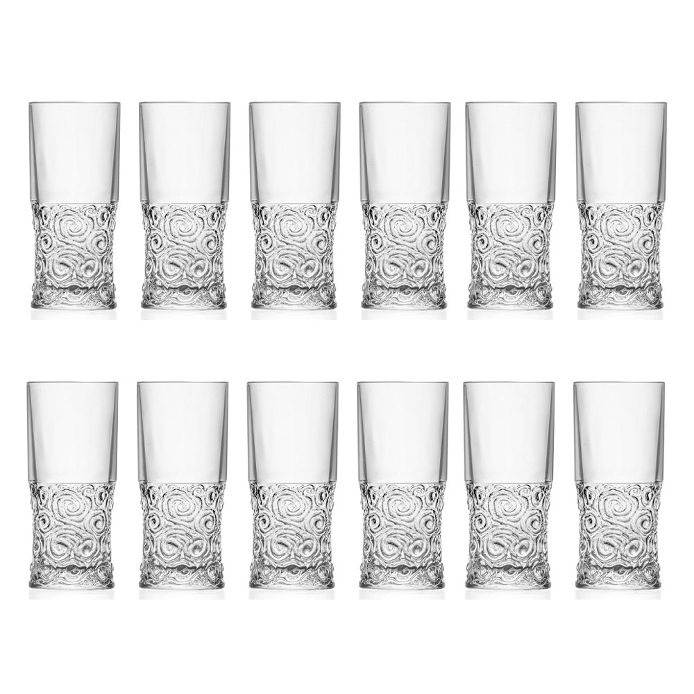 Verres highball en cristal écologique avec décoration ronde 12 pièces fabriqués en Italie.