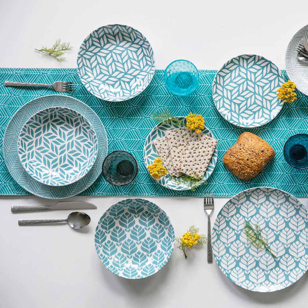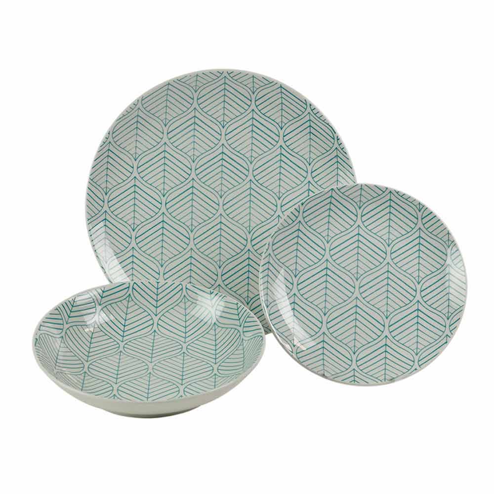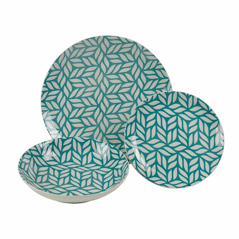 Service de table en porcelaine colorée avec décorations design élégantes, 18 pièces.