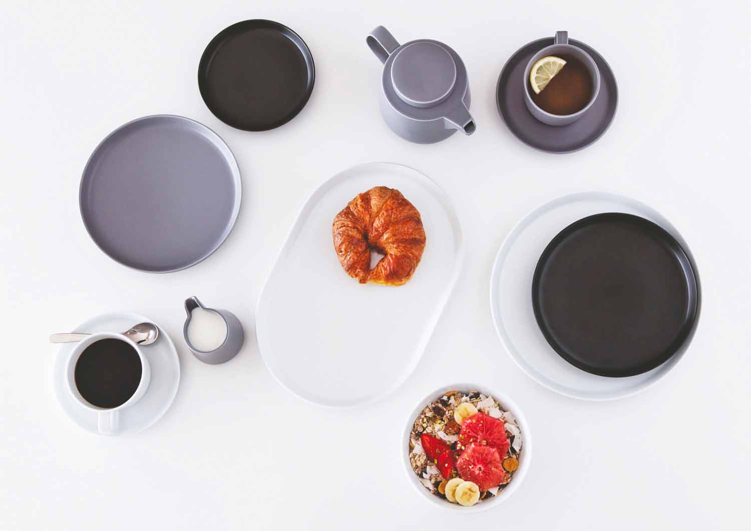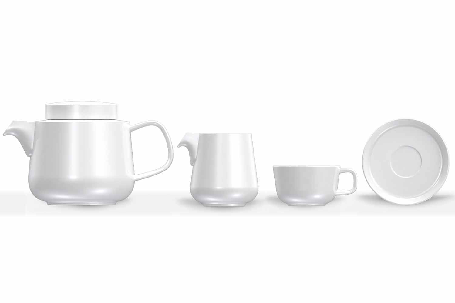 L'inspiration de cet ensemble de tasses à thé vient de la simplicité moderne du design et du paysage scandinaves . La forme est une synthèse parfaite et équilibrée entre une plaque de coupé et une plaque traditionnelle avec le bord: en fait, elle a un centre spacieux avec unbordétroit et raide. De cette manière, l'élégance esthétique et la fonctionnalité sont combinées pour offrir une plus grande surface dédiée à la présentation des aliments et une manipulation pratique de l'assiette.
