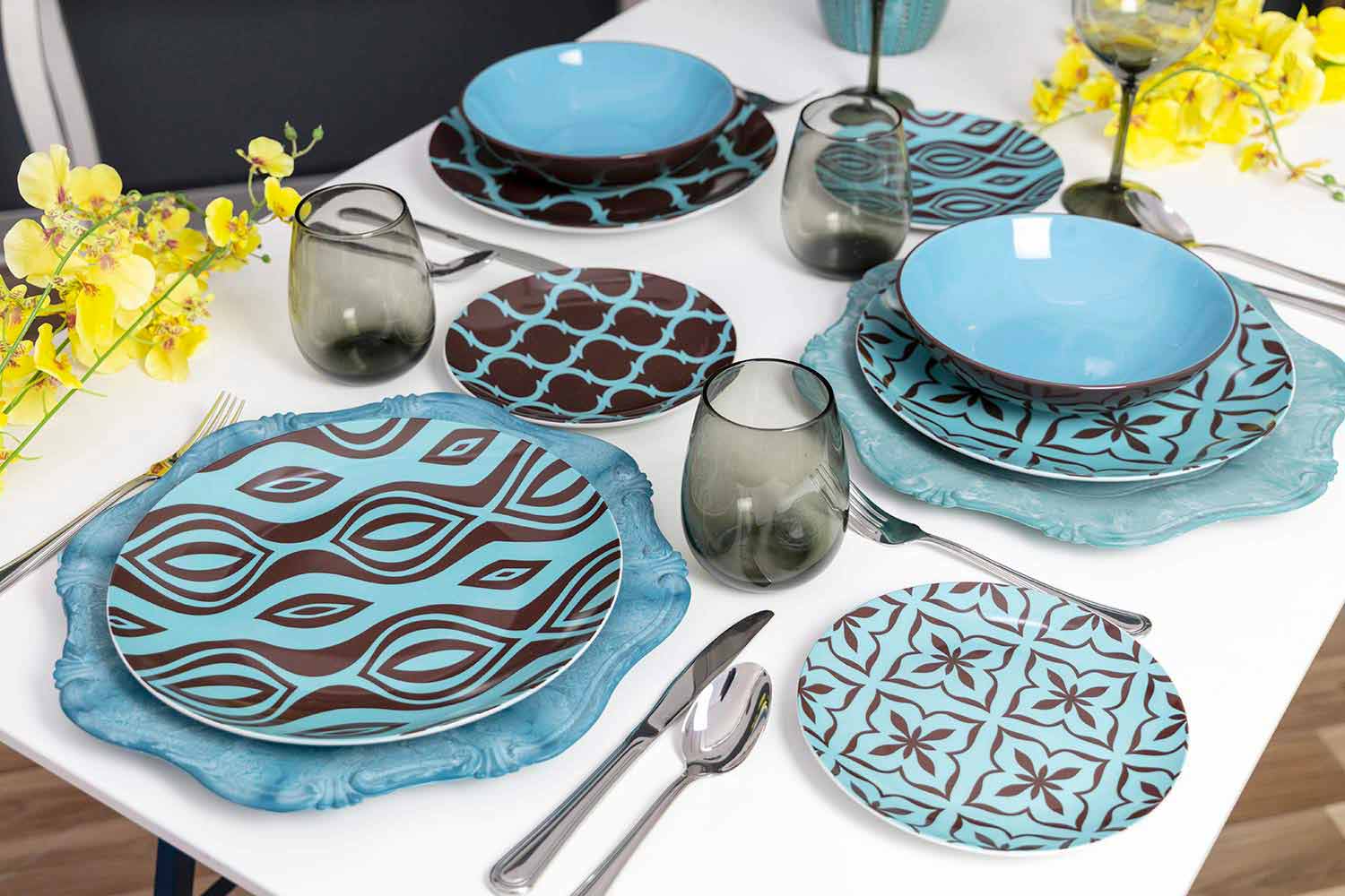 | Dimensions | Assiette plate décorée: diamètre 27 x h. 3 cm (poids: 666 gr) Assiette creuse solide: diamètre 21 x h. 5 cm (poids: 592 gr) Assiette de fruits décorée: diamètre 19 x h. 2 cm (poids: 310 gr) |