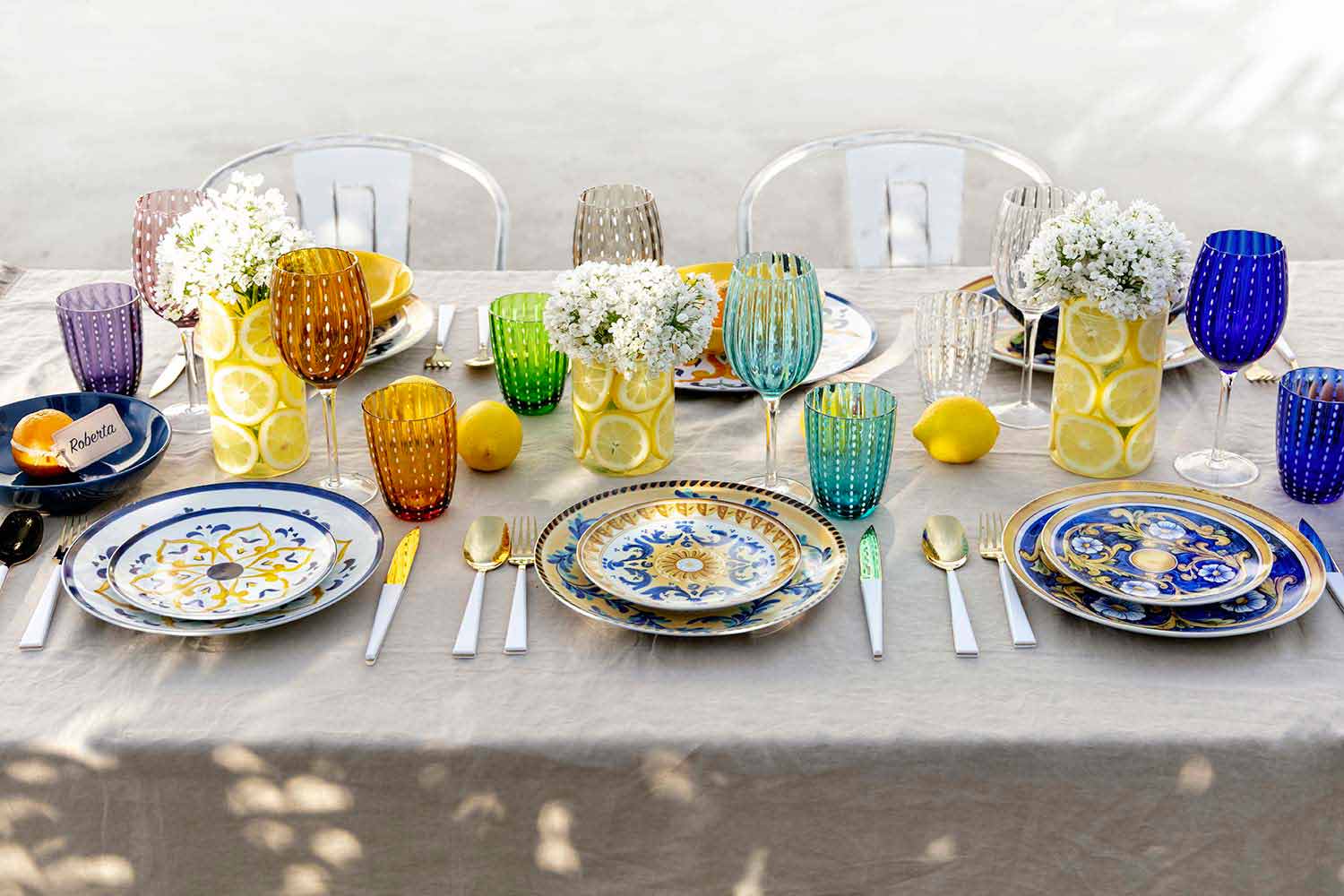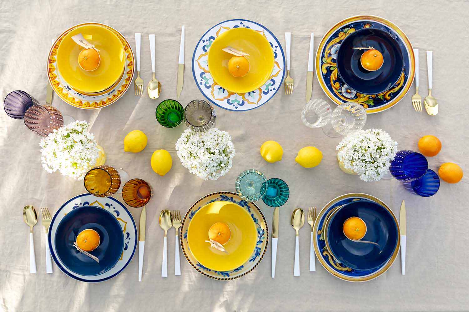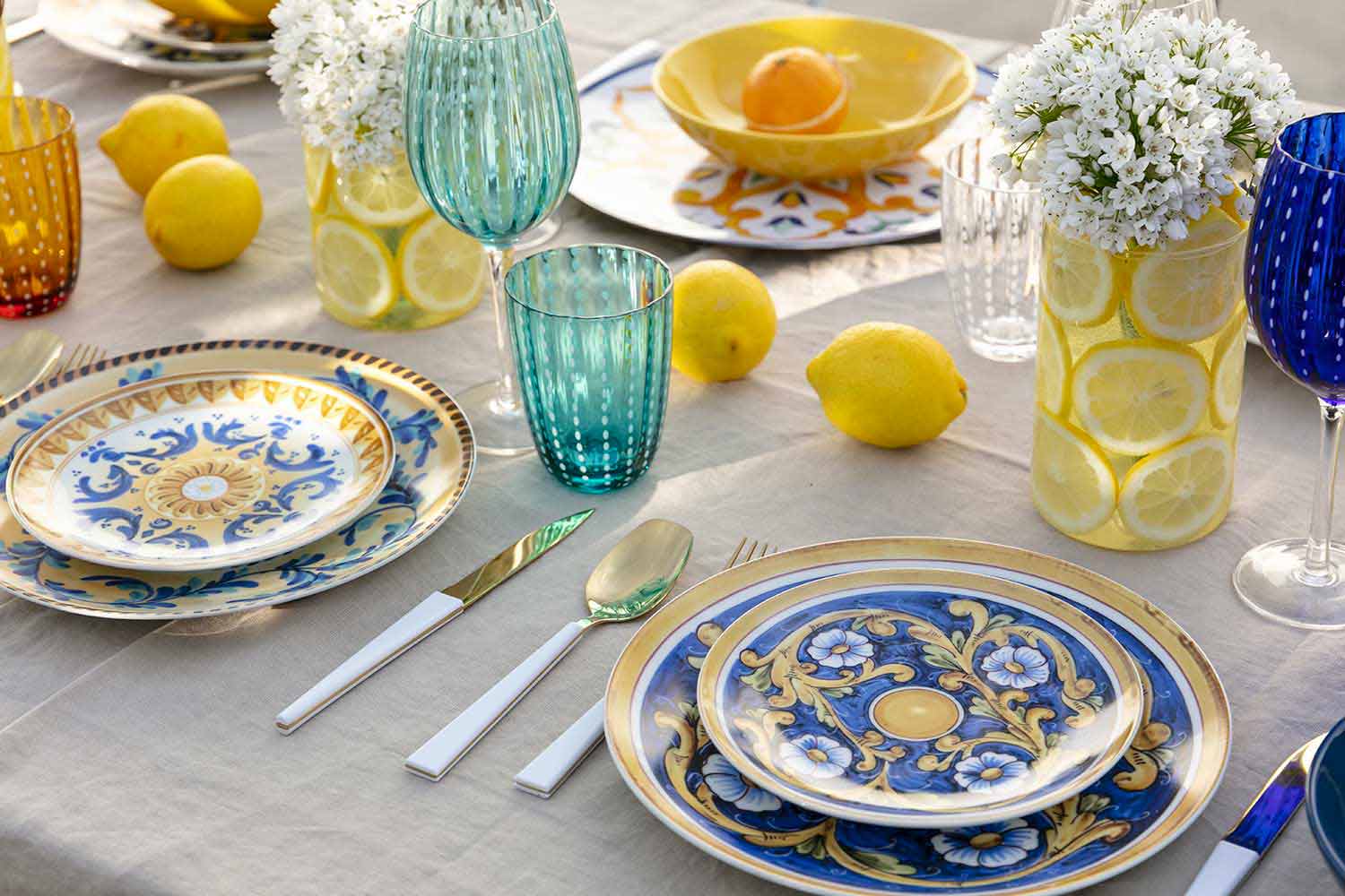 Inspiré de sa majolique traditionnelle, l'ensemble apporte à la table du