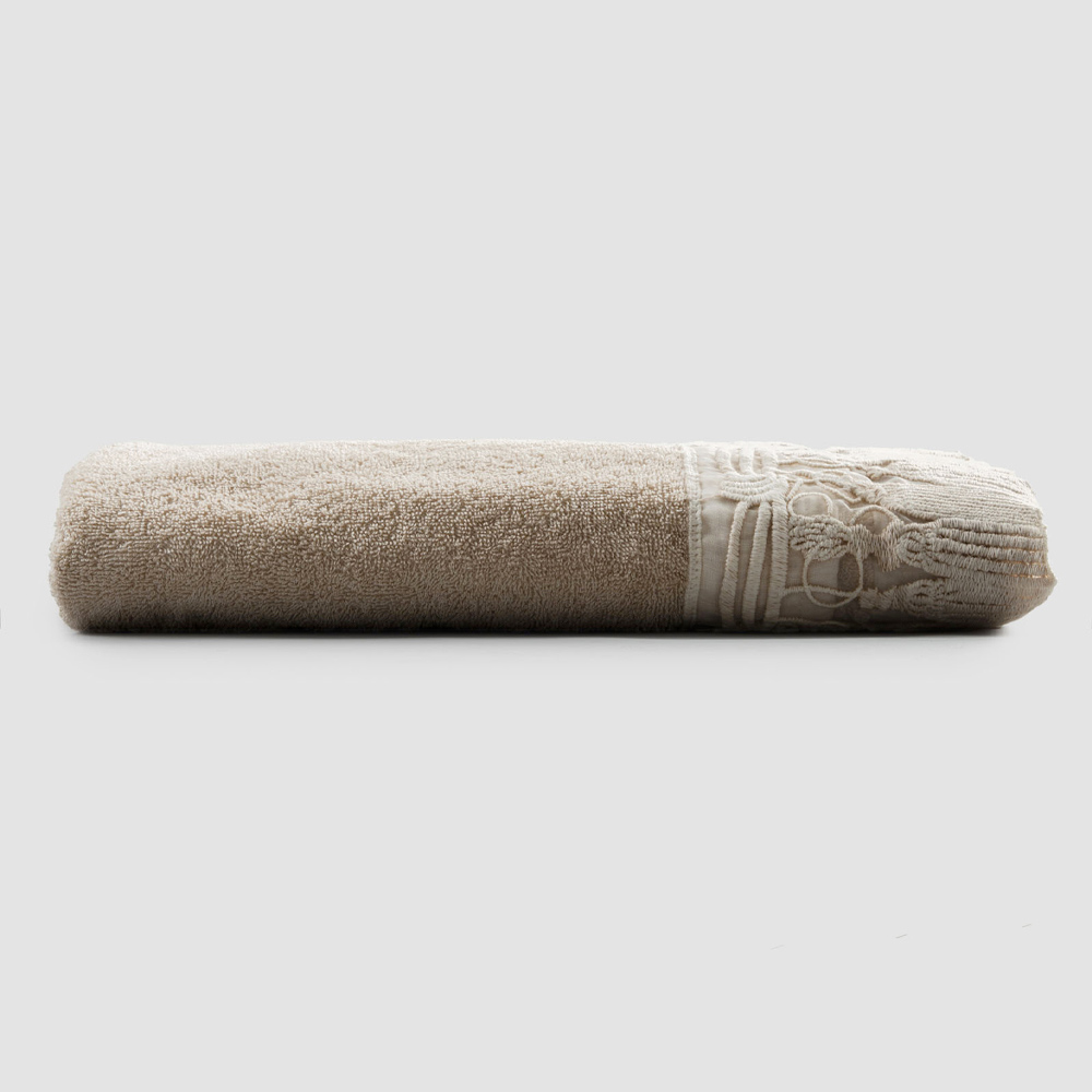 La valeur de la tradition rencontre le style de vie moderne avec la «serviette de bain en éponge de coton de couleur beige rosé, avec bordure endentelle Tassel pour un style élégant et luxueux. La serviette est produite en Italie en 100% lin de haute qualité et rendue douce au toucher grâce à des traitements spéciaux qui améliorent son aspect naturel. C'est un tissu idéal pour la salle de bain car il est hypoallergénique , antibactérien et surtout hygroscopique, pour le plein respect de votre peau, grâce à l'utilisation de colorants naturels et hypoallergéniques qui donnent brillance et vivacité à la fibre naturelle. Légèreté , liberté, élégance et pureté sont les maîtres mots contenus dans ce produit au charme noble et au tissu fin .