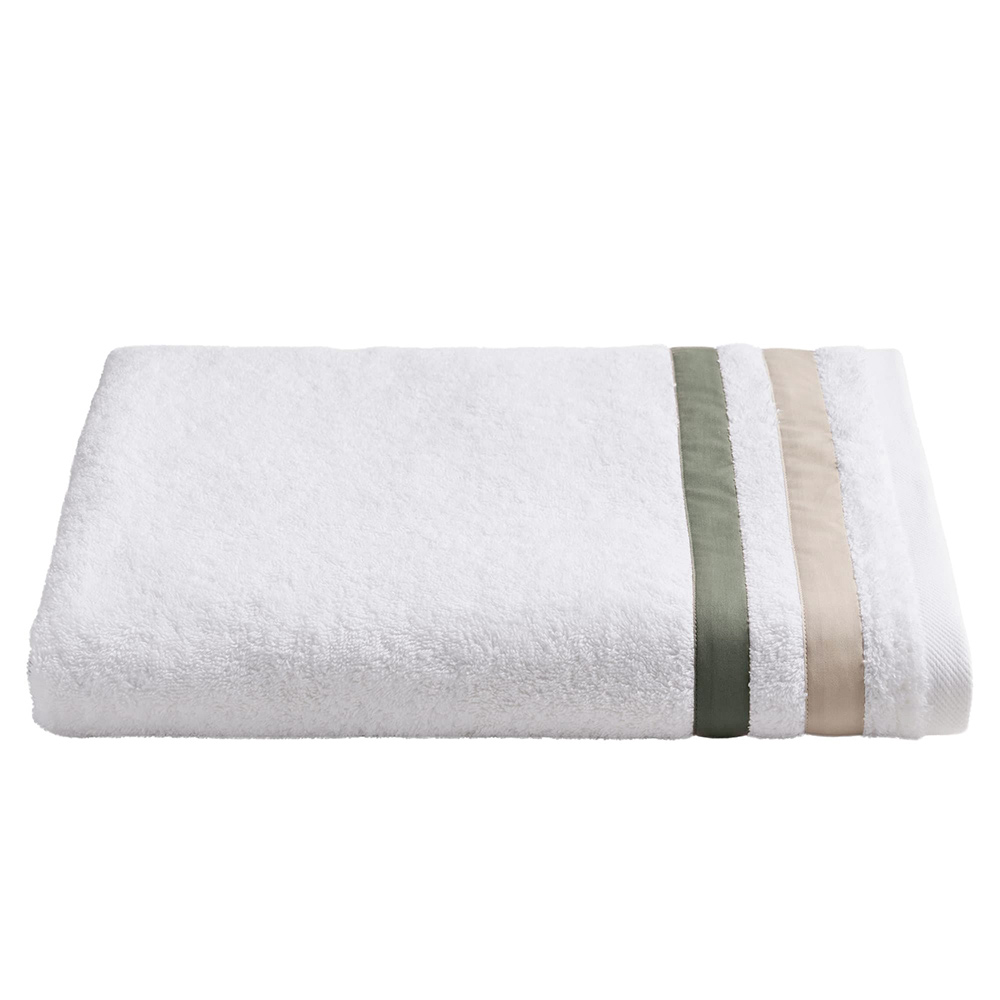 Serviette de douche en éponge pur coton 530 gr/m2 avec double volant en percale pur coton 200 tc.