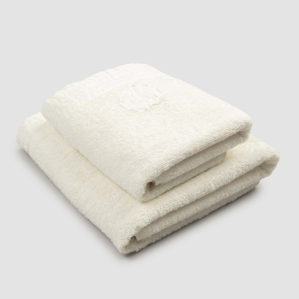 Paire de serviettes pour le visage et les invités en coton éponge et bordure en lin mélangés, de haute qualité fabriqué en Italie.