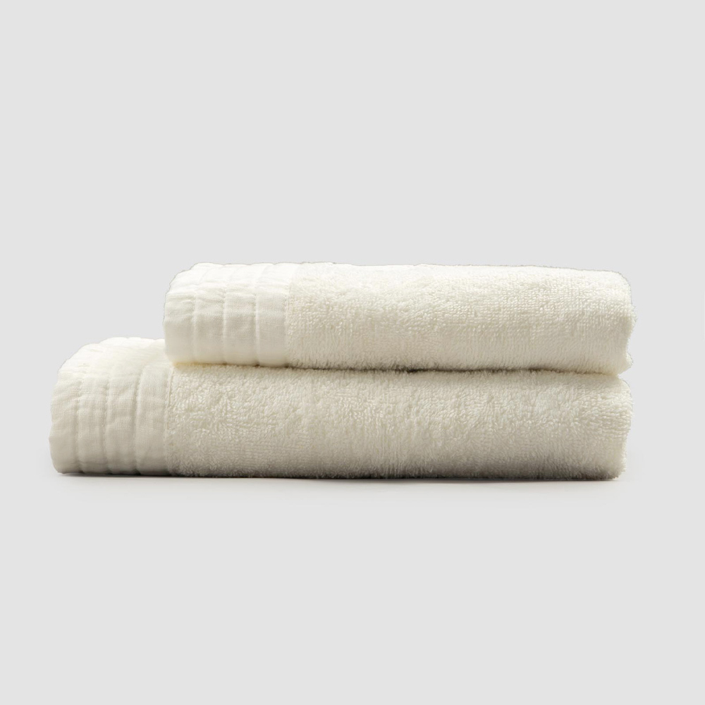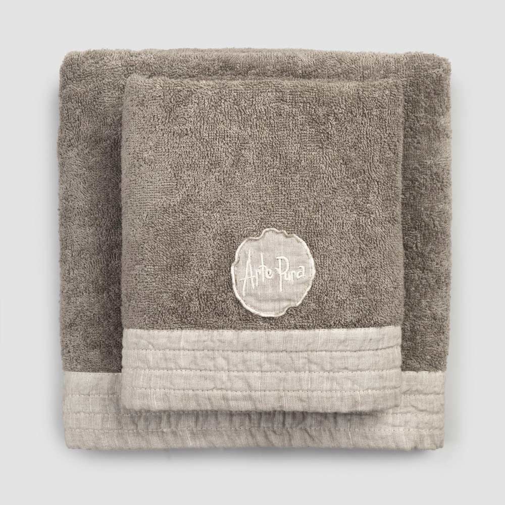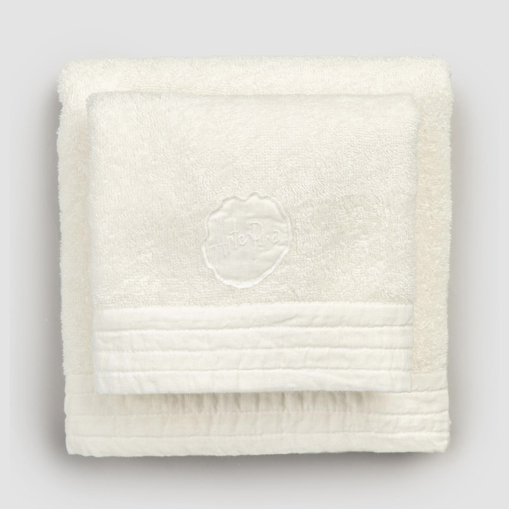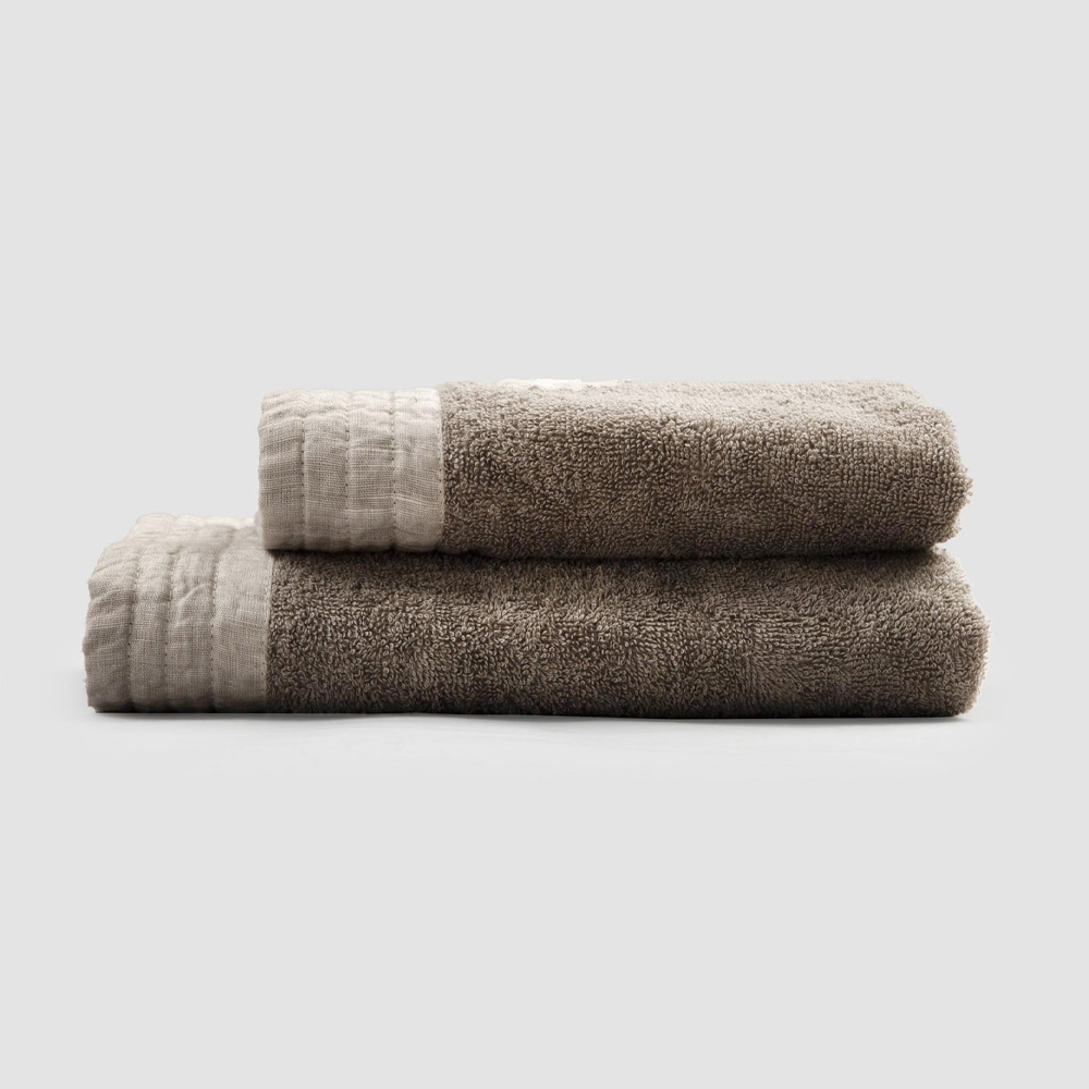 serviettes pour le visage et les invités en coton éponge avec une bordure en lin mélangé