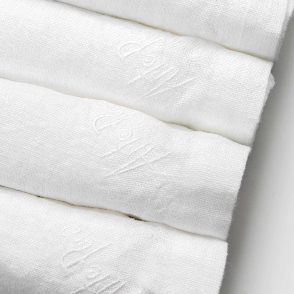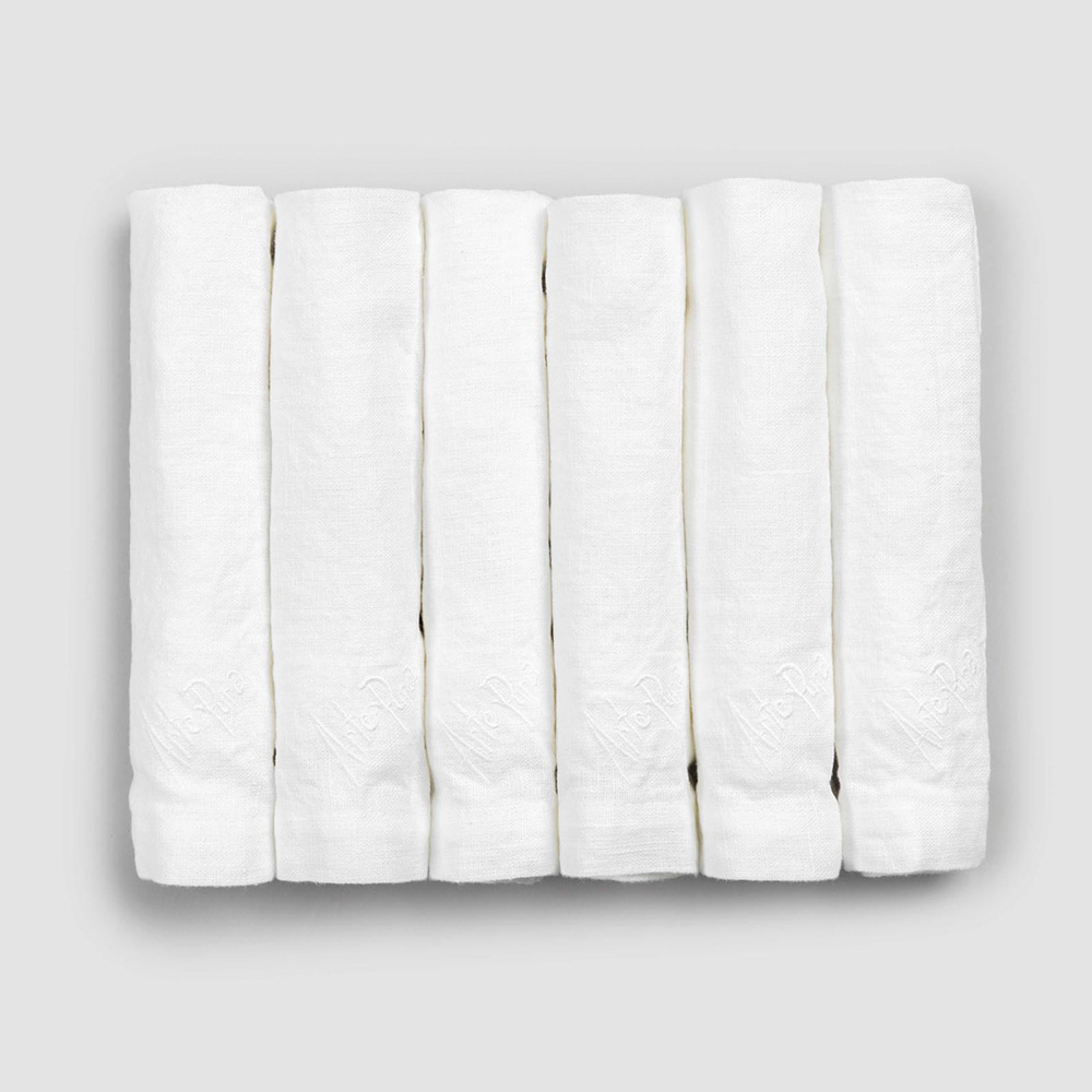 service de 6 serviettes en lin blanc épais avec bord plié.