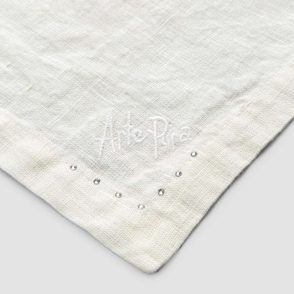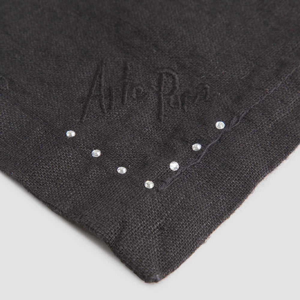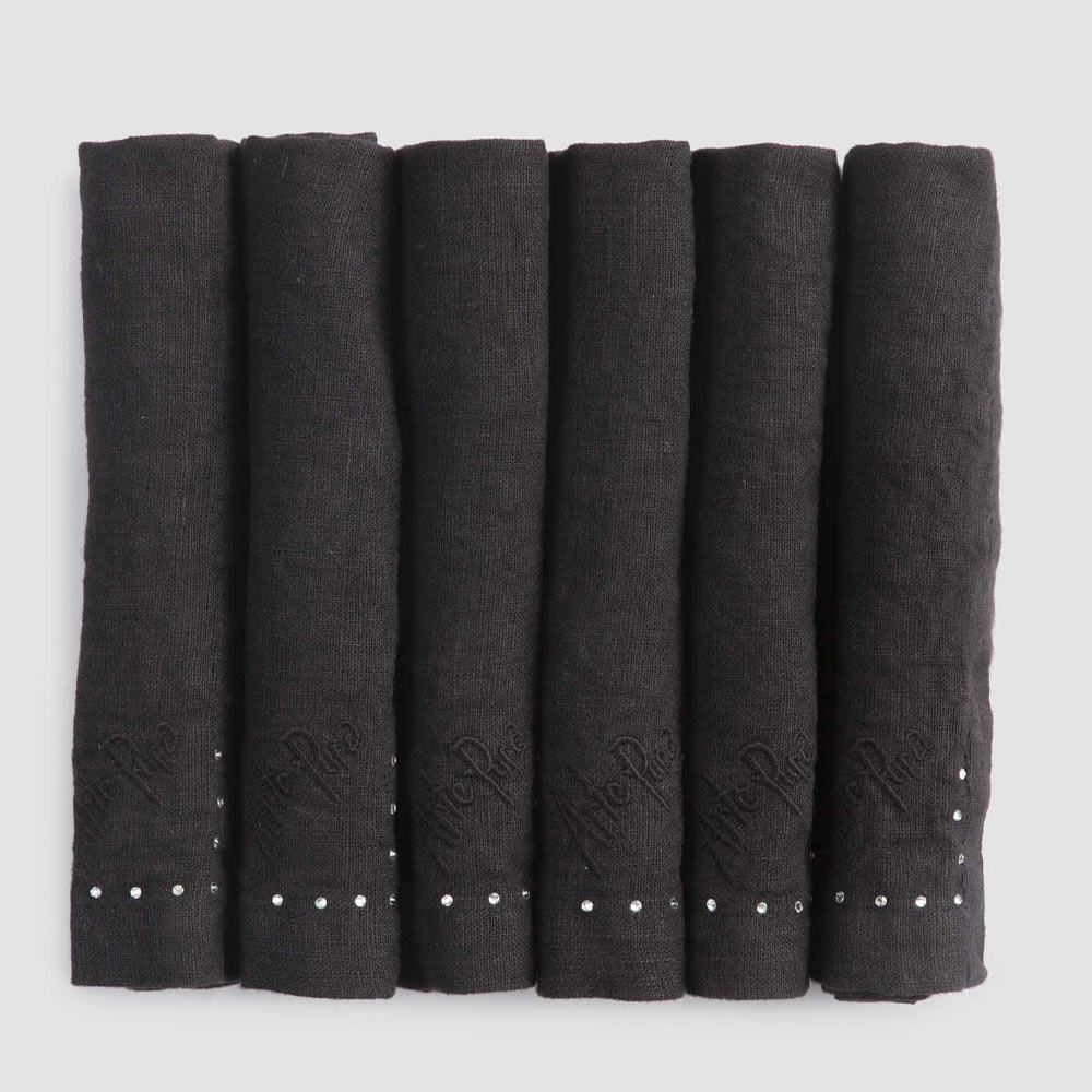 Serviette de table en lin noir ou beurre avec cristaux, 6 pièces de luxe fabriquées en Italie.