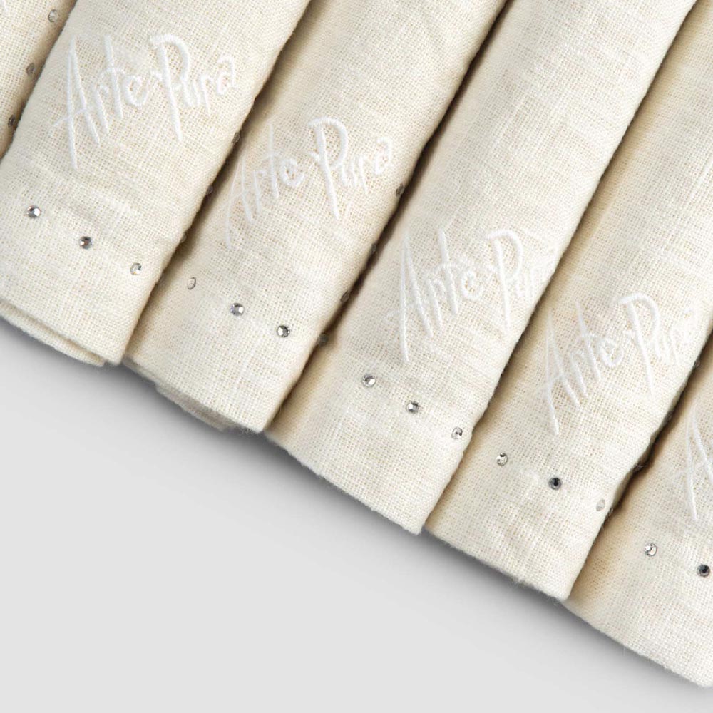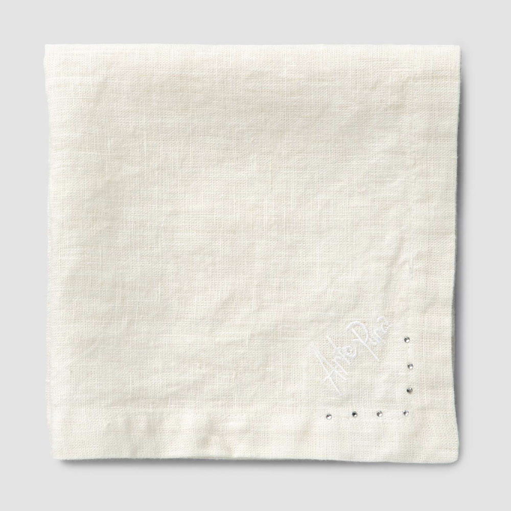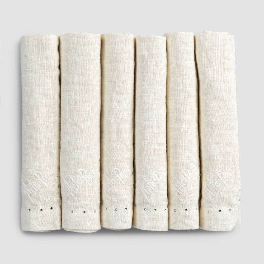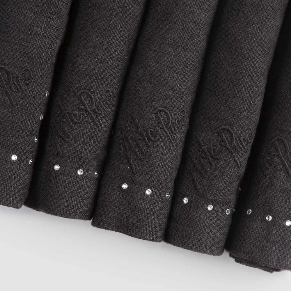 Serviette de table en lin noir ou beurre avec cristaux, 6 pièces de luxe fabriquées en Italie.