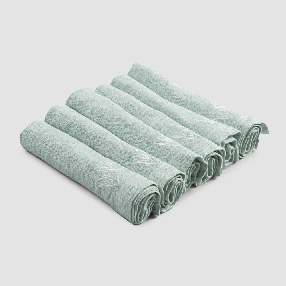 Serviettes en lin épais de couleur avec bord plié, 6 pièces de luxe fabriquées en Italie.