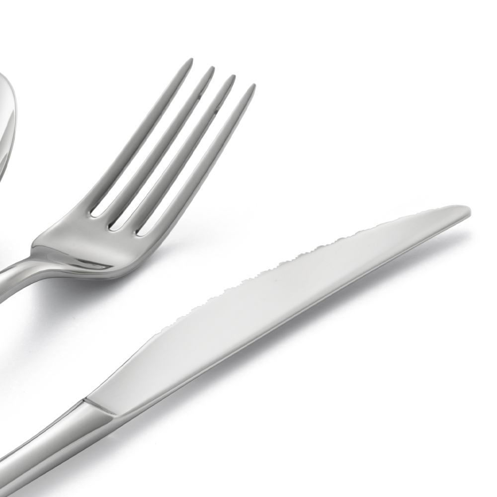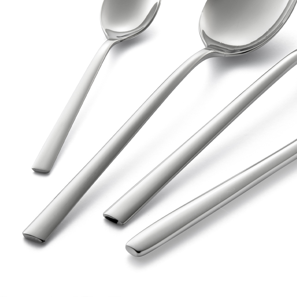 Ensemble complet de couverts carrés en acier inoxydable poli, 24 pièces fabriquées en Italie.