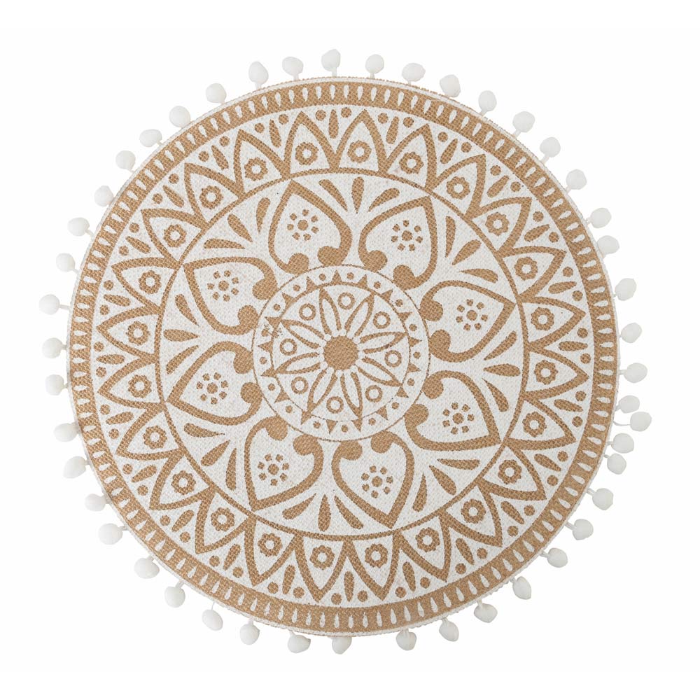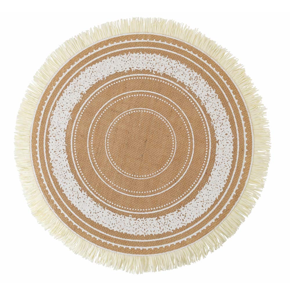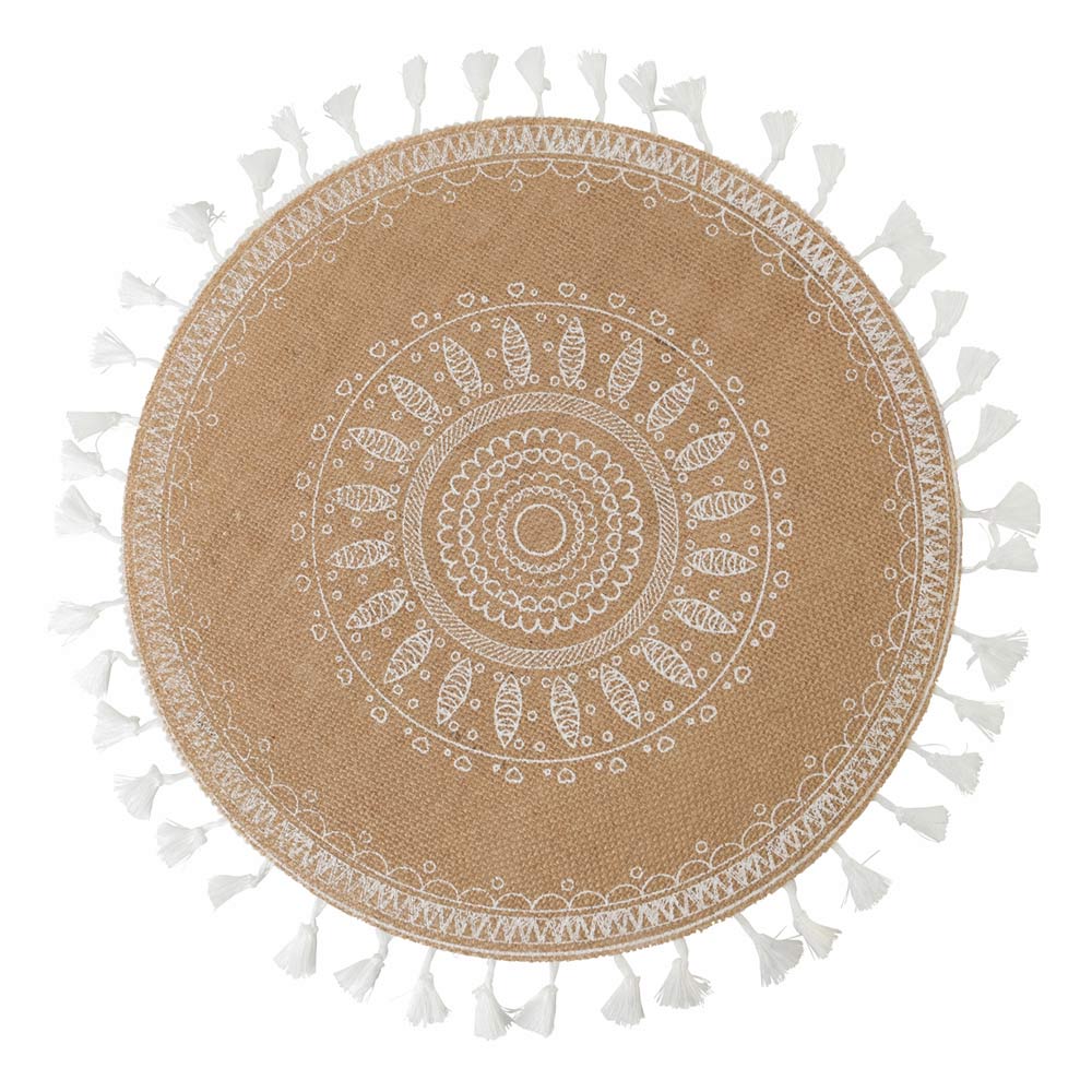 Set de table rond en jute décoré en 3 assortiments blancs, 12 pièces.