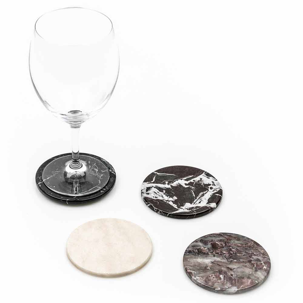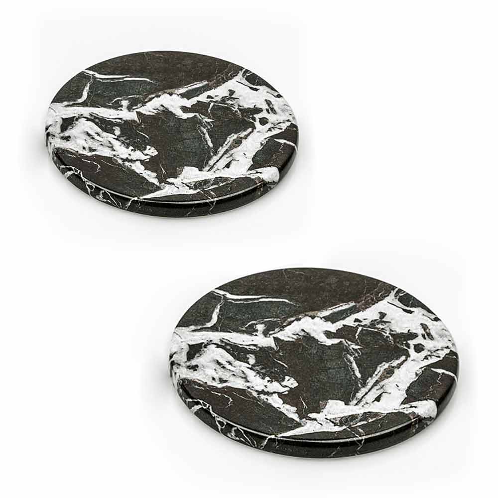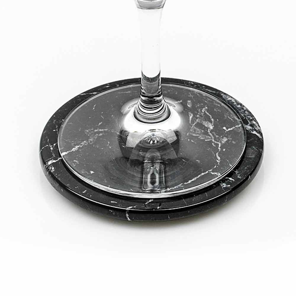 Deux sous-verres ronds caractérisé par un design élégant et innovant et fait de marbre précieux de haute qualité . Ce sont des pièces uniques car chaque bloc de marbre utilisé diffère des autres pour les veines et les nuances.