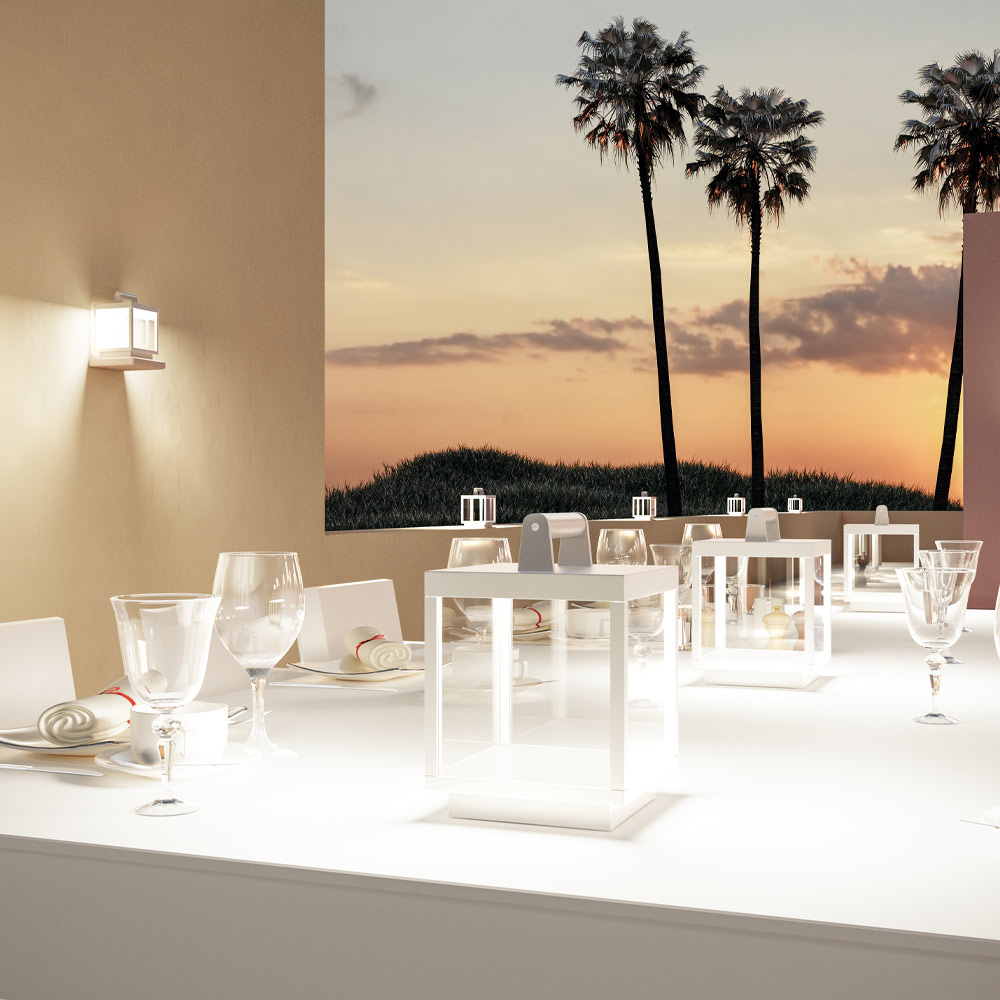 Grâce à sa conformation, elle est parfaite à la fois comme lampe de support en combinaison avec plusieurs éléments et comme lampe à suspension grâce à l'utilisation du crochet positionné dans la partie supérieure. Le résultat est un complément de haute qualité capable de mettre en valeur les espaces extérieurs dans des environnements domestiques ou contractuels.