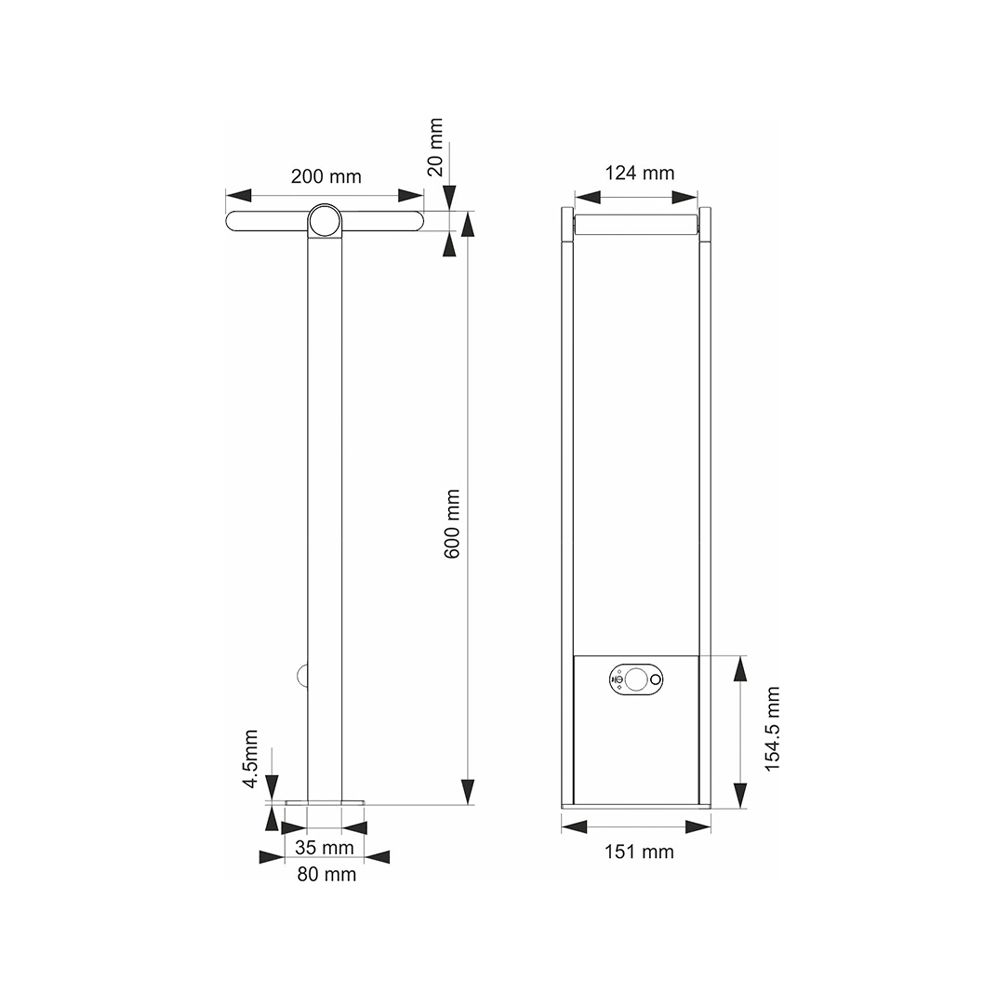 Lampadaire d'extérieur en aluminium avec LED 1,6W équipé d' un détecteur de mouvement et d'un panneau solaire pratique dans la partie supérieure qui permet de charger la lampe simplement en la laissant sous la lumièresolaire.