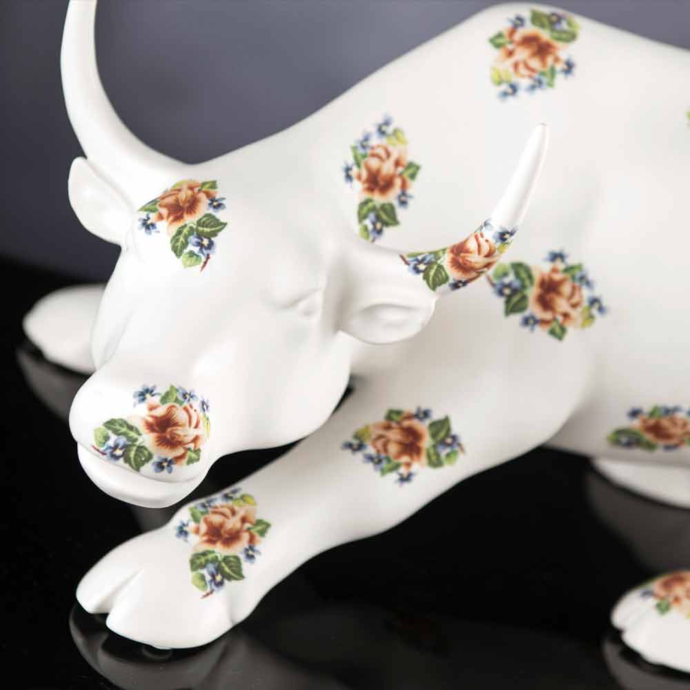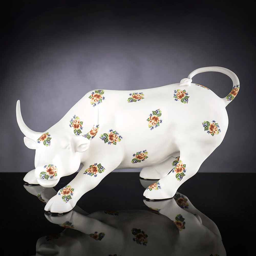 Statue en céramique colorée en forme de taureau fabriquée à la main en Italie, de haute qualité.