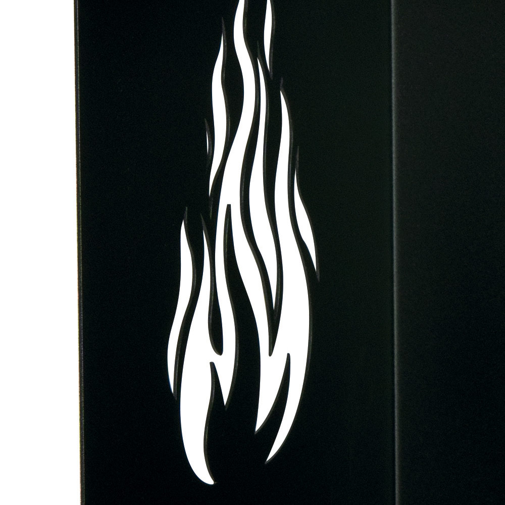 Ce porte-bûches en métal allie fonctionnalité pratique et design attrayant pour enrichir l'espace de votre cheminée. La structure noire est résistante et robuste, conçue pour accueillir une quantité généreuse de bois. Les découpes à la flamme sur les côtés servent non seulement d'éléments décoratifs mais assurent également une ventilation correcte, indispensable pour garder le bois sec.