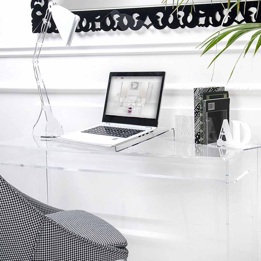 Fabriqué en plexiglas transparent ou fumé à partir de polymère 100% vierge, il est l'allié parfait pour travailler confortablement à domicile et peut se présenter comme une idée originale de cadeaux de Noël pour ceux qui veulent un complément de design pratique et fonctionnel . Le matériau, résistant et de haute qualité, garantit une luminosité et une brillance constantes dans le temps.