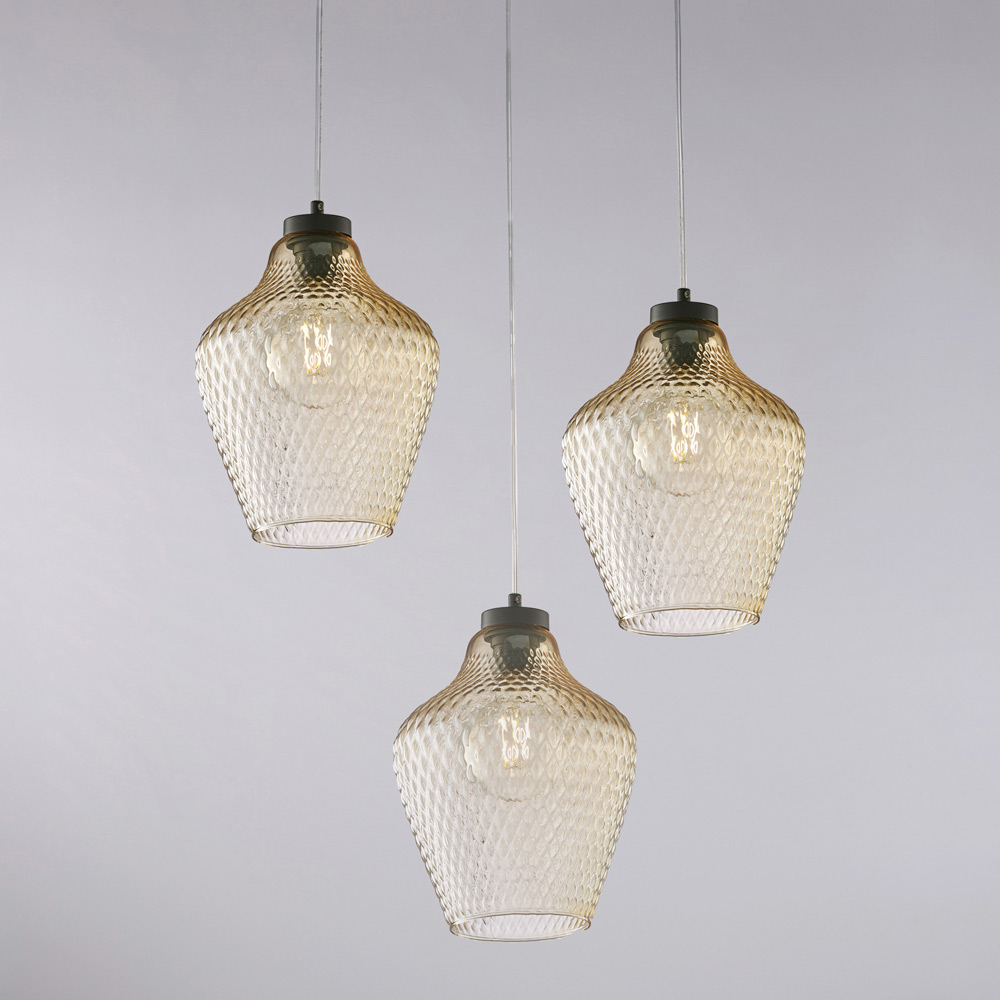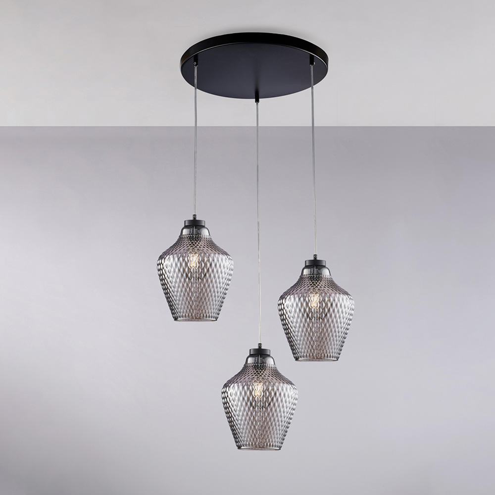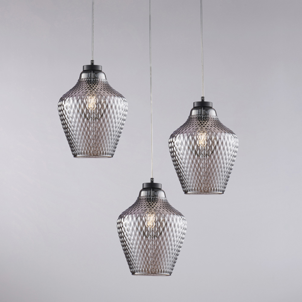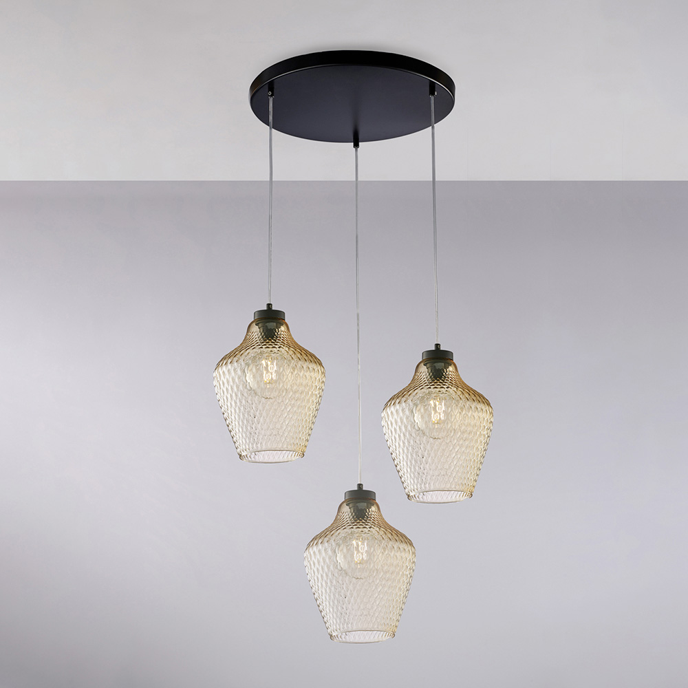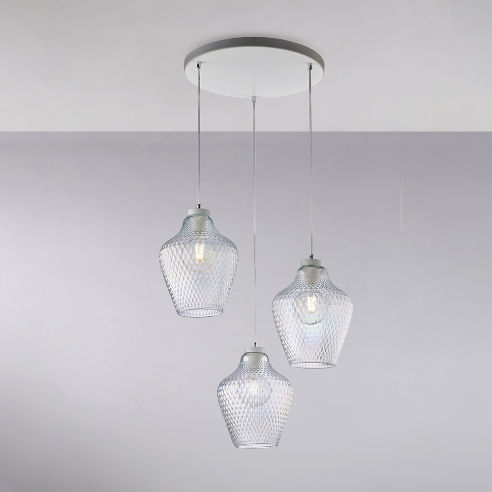 Suspension Alnitak à 3 lumières en verre et métal