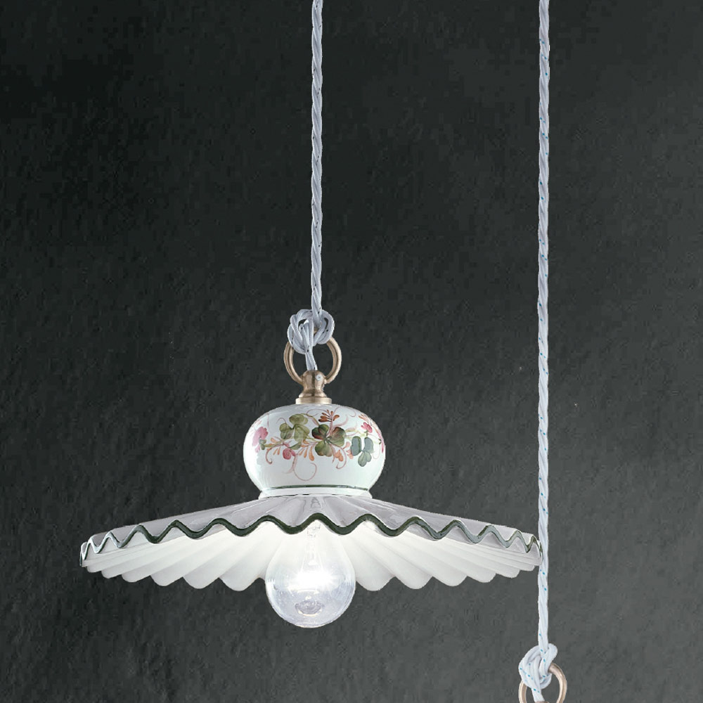 Cette suspension est entièrement réalisée à la main en métal et céramique avec décoration peinte à la main ,mettre en valeur le savoir-faire et les savoir-faire manuels des artisans. Le design se caractérise par les détails rustiques et romantiques typiques de la campagne italienne qui meublent les différentes chambres avec fraîcheur.