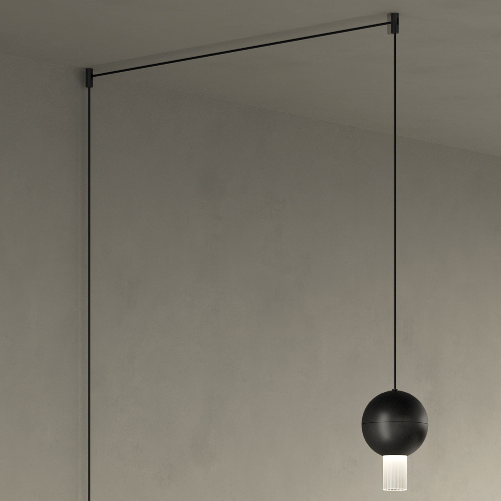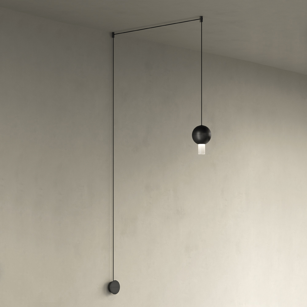 Cette suspension incarne l'essence même du minimalisme élégant , avec sa forme compacte et harmonieuse qui sublime tout espace avec discrétion et style . Son corps sphérique s'harmonise parfaitement avec l'élément d'éclairage inférieur, créant un contraste raffiné entre volume et transparence .