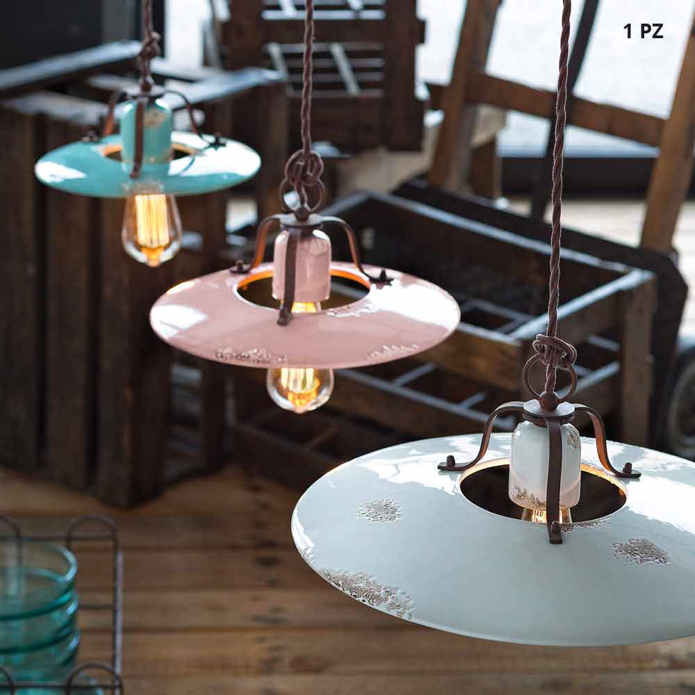 Lustre country en céramique et métal Monica Ferroluce Monica est une suspension fantastique au style country - vintage. Suspension faite à la main par des artisans qualifiés en Italie. Monica est une lampe originale et fonctionnelle, faite de céramique et de métal et composée de lignes élégamment sinueuses. L'effet négligé des surfaces est un détail recherché obtenu grâce à des étapes techniques précises. Comme si le temps avait marqué son chemin. Un design qui s'oppose au luxe mais qui cohabite harmonieusement avec lui. Une suspension unique en son genre, qui crée un large faisceau de lumière directe qui éclaire harmonieusement tout ce qu'elle rencontre. Idéal pour les environnements avec un style urbain et une saveur vintage. Des petits détails pour un grand effet au goût d'antique ! Lampe disponible en différentes finitions. Consultez le nuancier et entrez le code de la finition souhaitée dans la case appropriée !