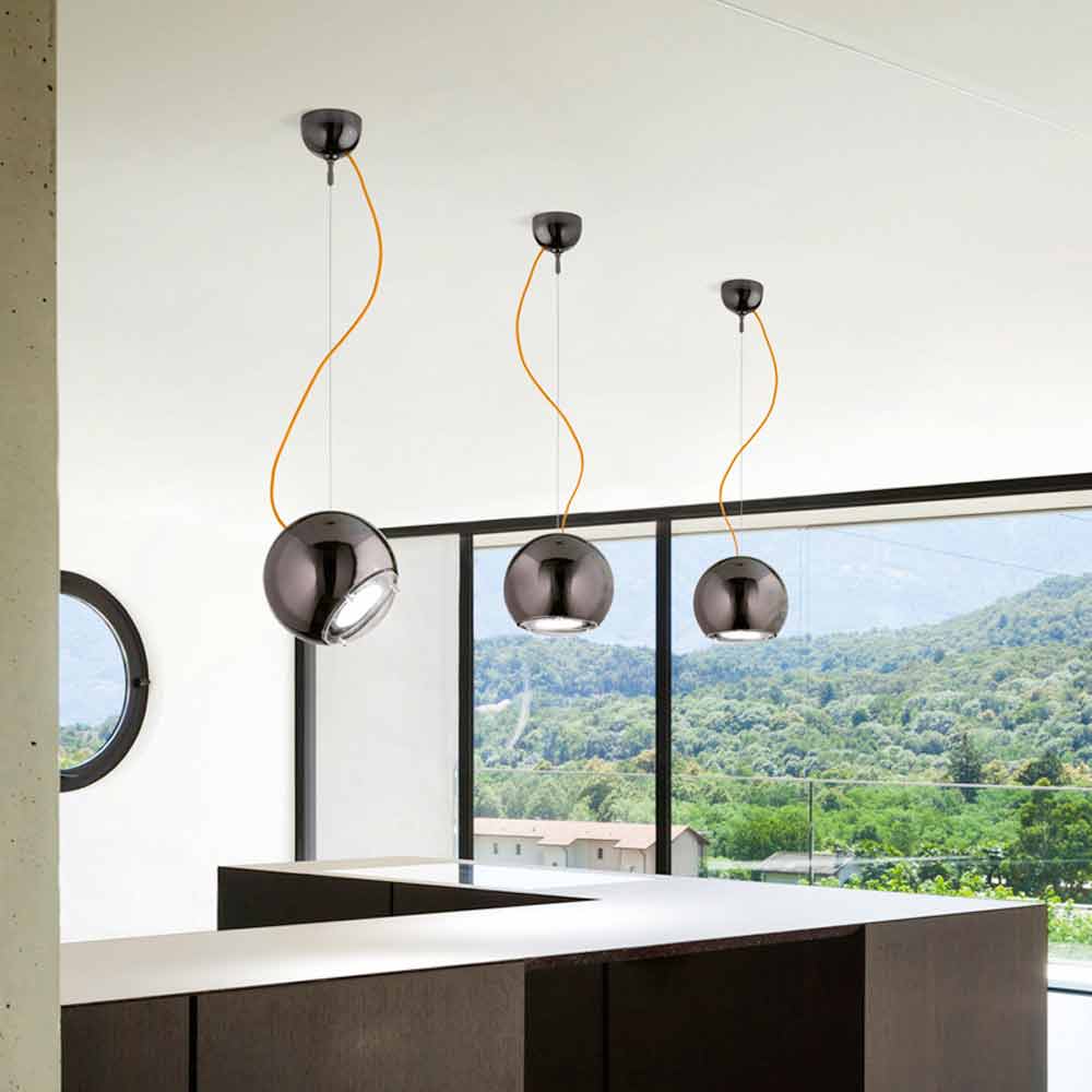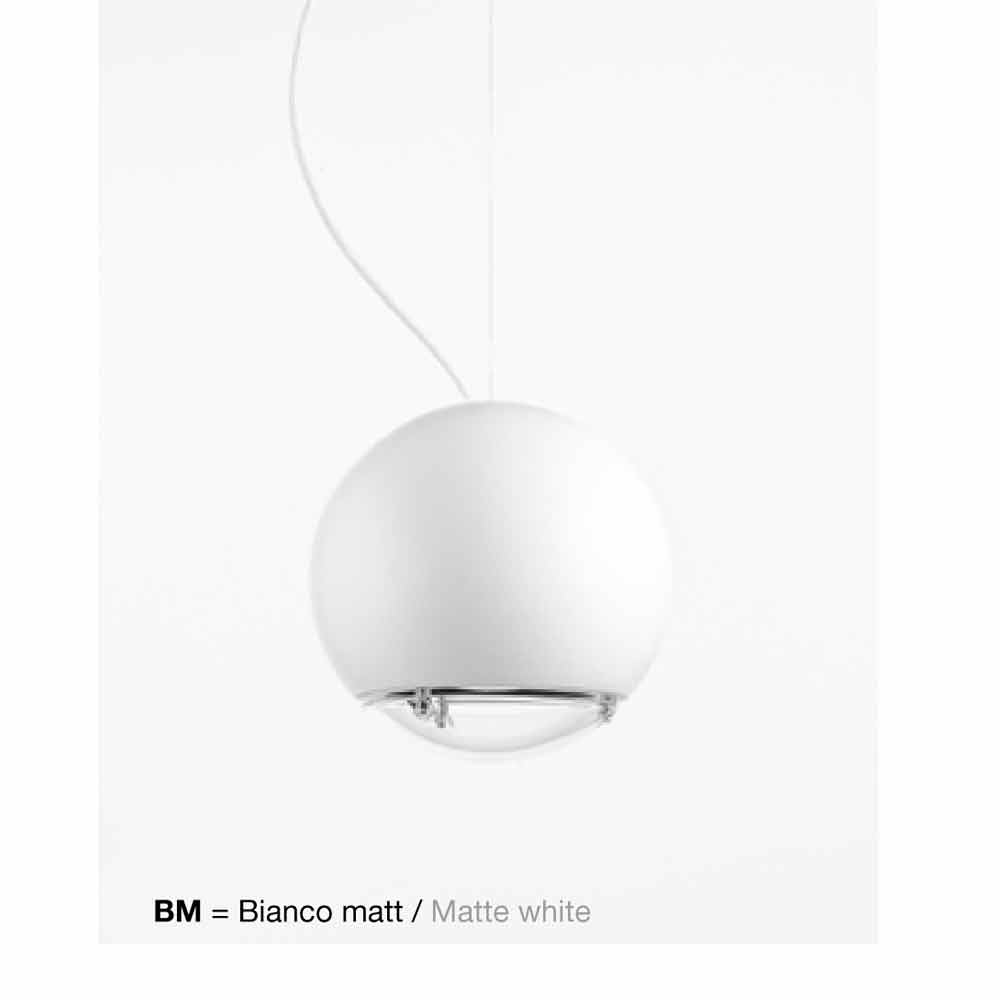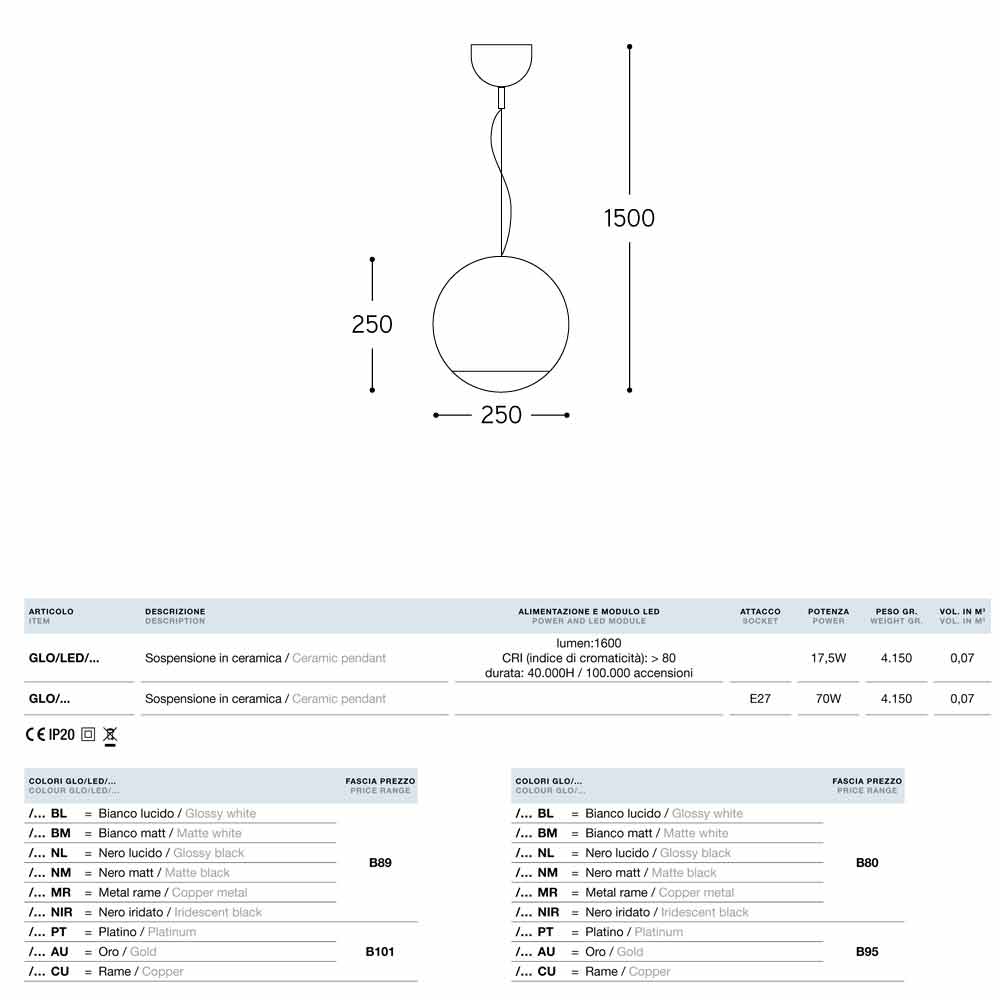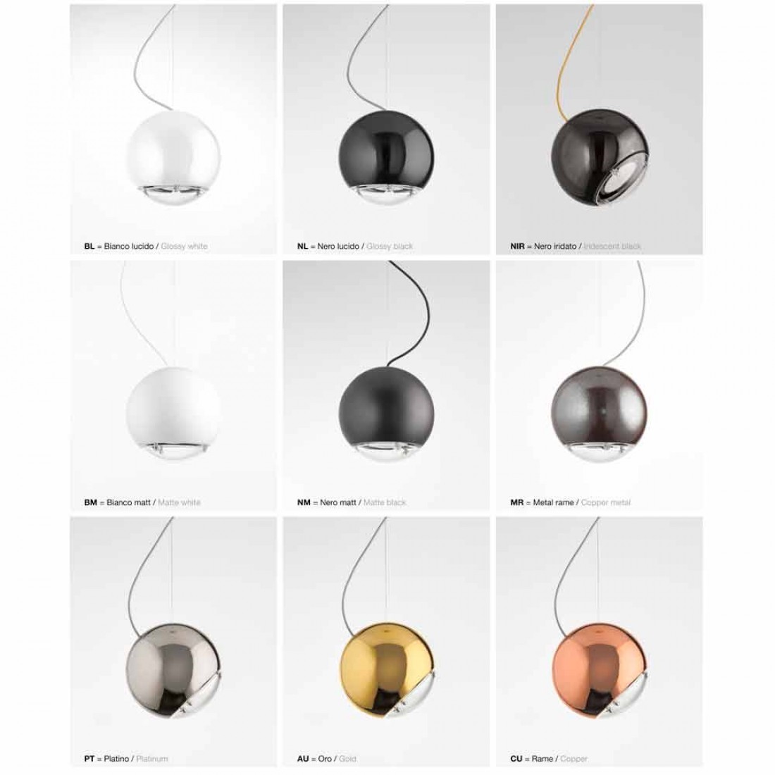 Globo est disponible avec douille pour ampoule standard E27 ou LED et dans les couleurs suivantes: blanc poli, blanc mat, noir poli, noir mat, métal cuivre, noir irisé, platine, or et cuivre.