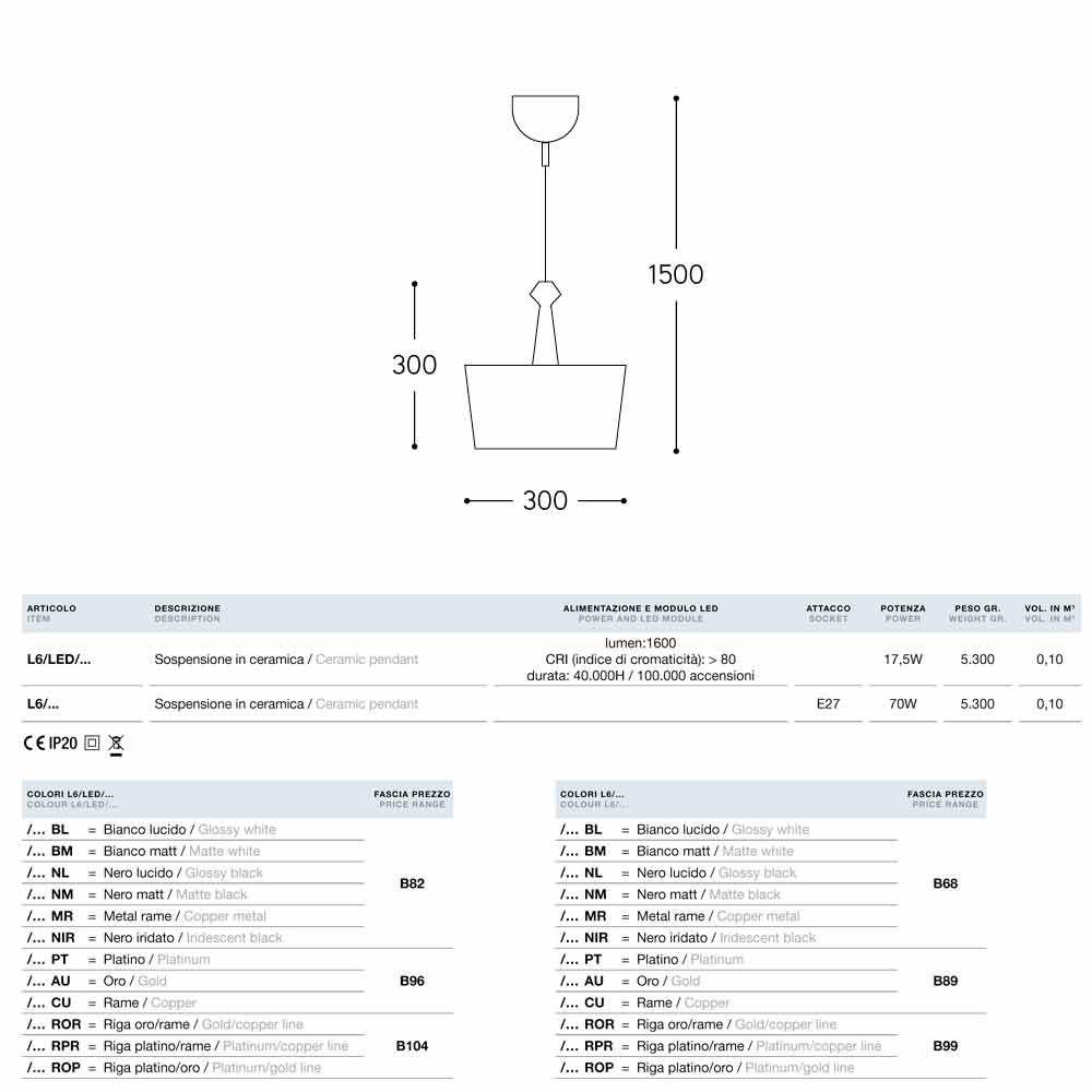 Suspension de design moderne en céramique I Lustri 6par Aldo Bernardi. I Lustri 6 est disponible dans plusieurs finitions et avec douille pour ampoule standard E27 ou lumière LED.