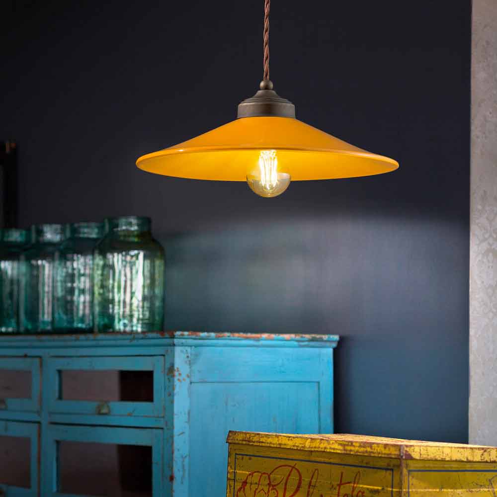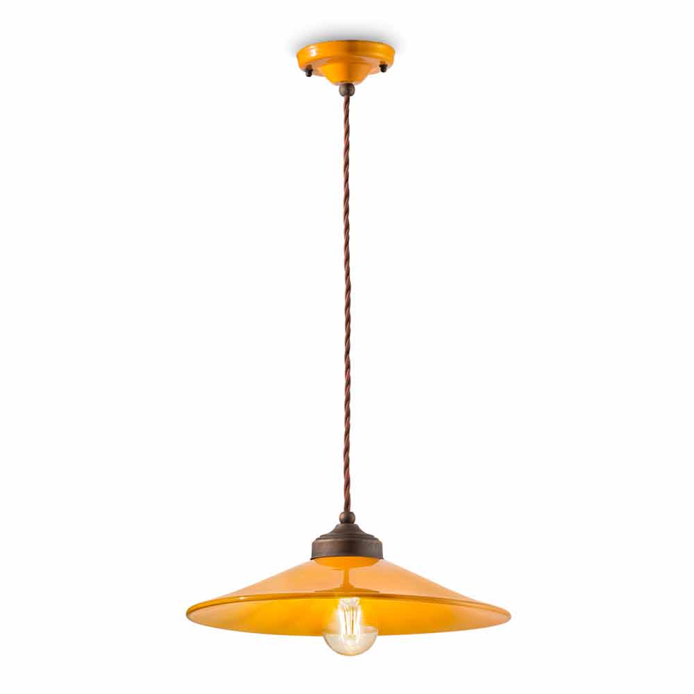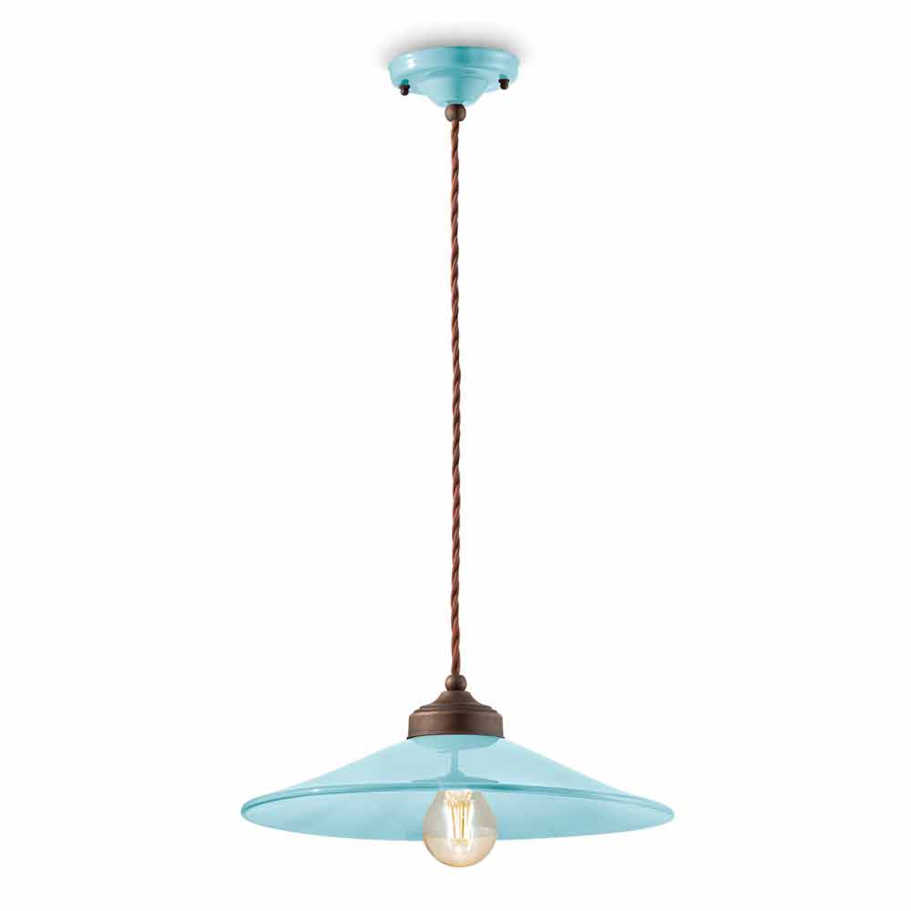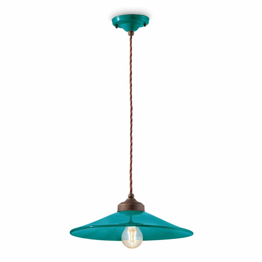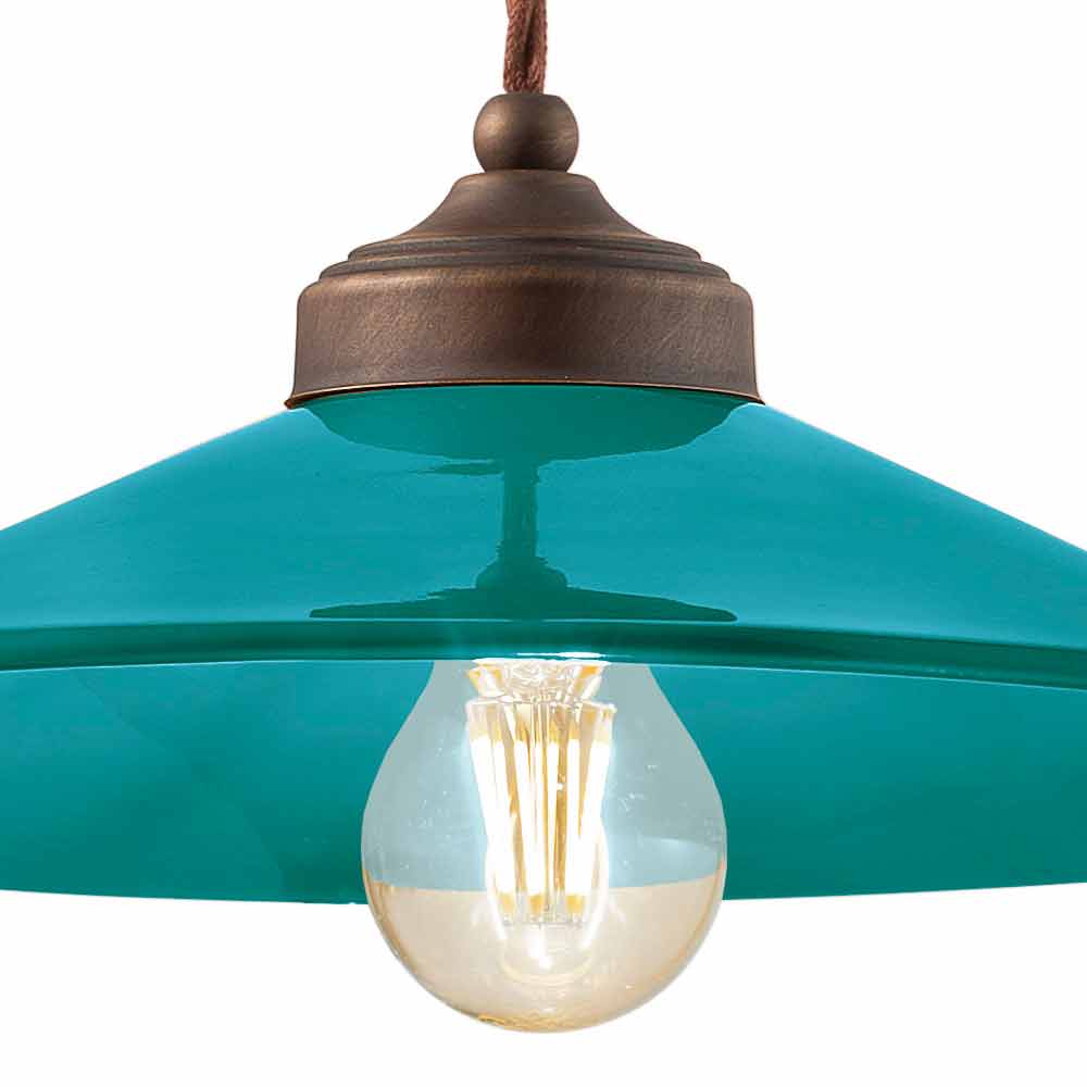 Suspension en céramique colorée et laiton antique Maya par Ferroluce Maya est une lampe à suspension fantastique, avec un style retò revisité dans une touche moderne, fabriquée à la main par des artisans qualifiés en Italie. Cette belle suspension se compose d'une structure en laiton antique avec un diffuseur en céramique colorée brillante, disponible en différentes couleurs. La céramique colorée se marie bien avec le laiton antique et cette union est le point fort de cette lampe. Suspension créée pour les environnements à l'atmosphère enveloppante, elle est capable de satisfaire les demandes les plus exigeantes grâce à un design unique et original. Un design qui s'oppose au luxe mais qui cohabite harmonieusement avec lui. Un design qui préserve l'essentiel de l'usage et rassure par un délicat équilibre entre les formes et les tons. La lumière large et diffuse apporte une atmosphère chaleureuse et accueillante à tous les environnements dans lesquels elle est insérée. Ce sont ces formes simples et délicates qui attirent l'attention et qui permettent à Maya de s'adapter à n'importe quel décor, du plus simple et minimal au plus classique, créant un contraste délicat. Apportez aussi une touche design à votre intérieur ! Des petits détails pour un grand effet au goût d'antique ! Lampe disponible en différentes finitions. Consultez le nuancier et entrez le code de la finition souhaitée dans la case appropriée !