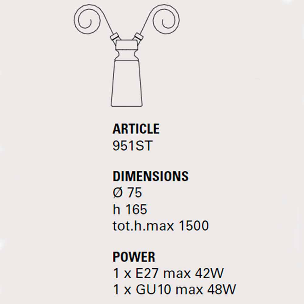 Ampoules : 1 x E27 max 42W, 1 x GU10 max 48W IP 20 -
