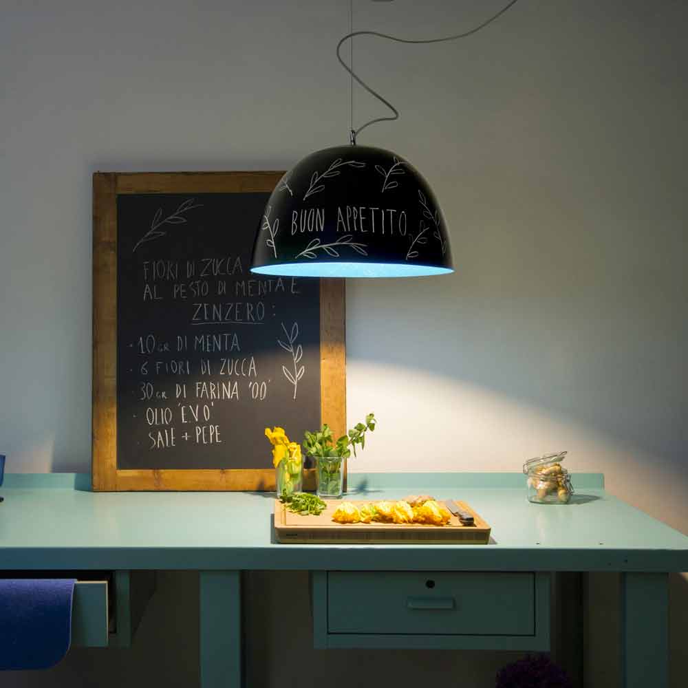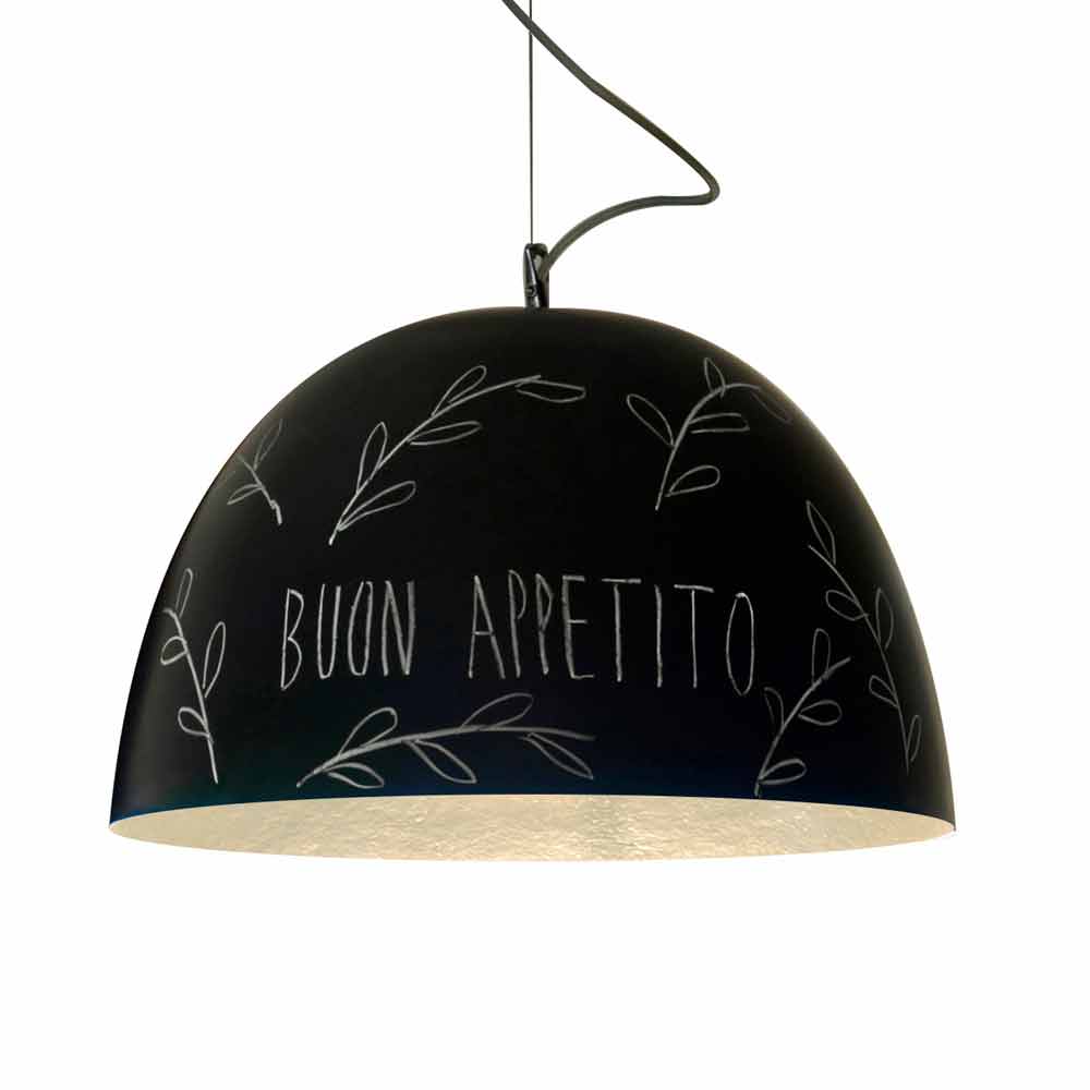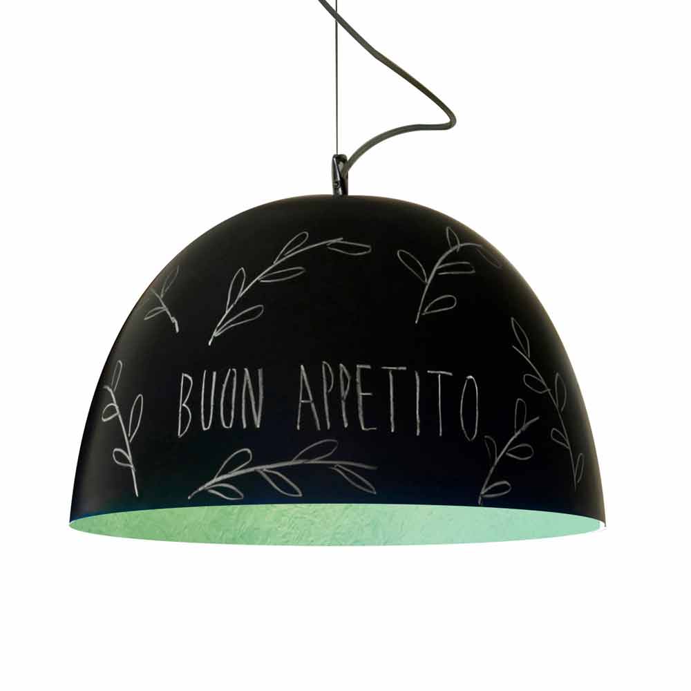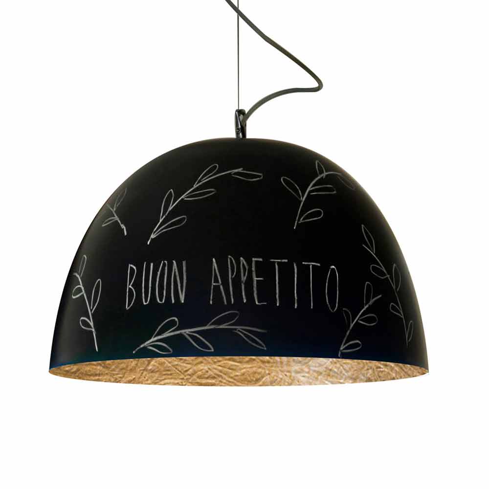 Lampe suspension contemporaine In-es.artdesign H2o Resin blackboard Le lustre suspendu H2o Lavagna de la collection Matt by In-es.artdesign a une structure en: laprène, nylon, acier, résine nébulite, effet tableau noir. Nebulite® est un matériau innovant composé de résine et de fibre, dont les nervures confèrent à la lampe un effet "lunaire" particulier; tandis que la résine est le matériau de pointe de la lampe H2o Lavagna, car elle peut être écrite et effacée à la surface comme un véritable tableau noir.
