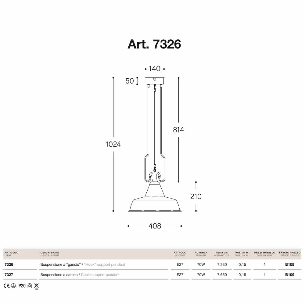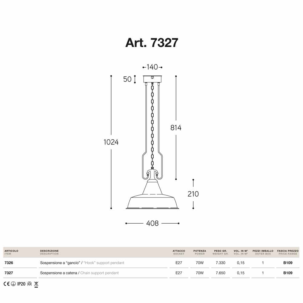 Fonderia est disponible avec support, avec crochet ou avec chaîne.