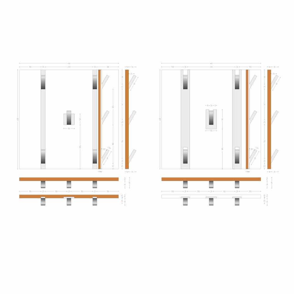 Ce panneau mural en bois de teck avec 5 cintres en corian blanc constitue un cintre mural au design essentiel et moderne.