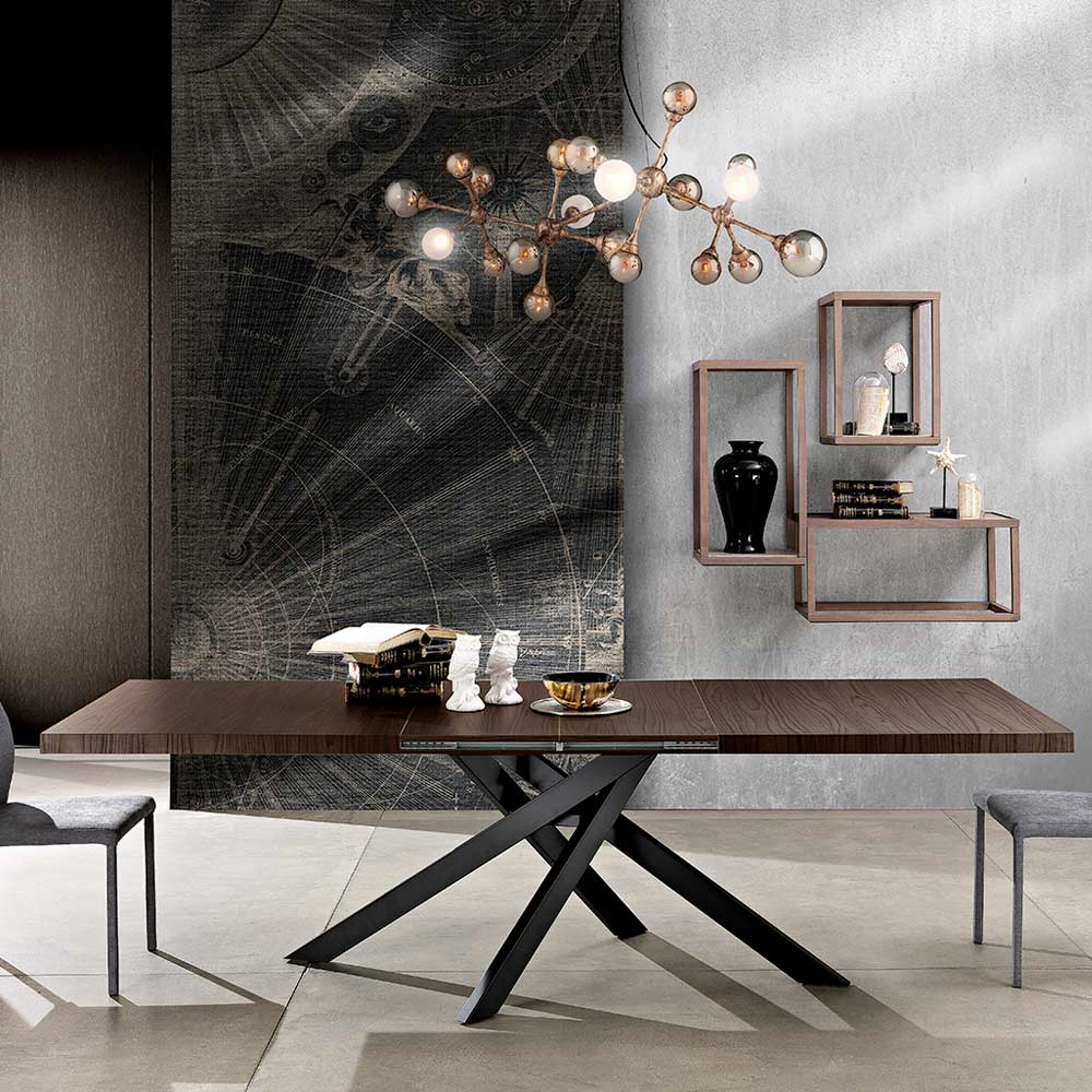 Dionigi est une table extensible produite en Italie avec une base en métal peint et un plateau pliant en mélamine caissonné (épaisseur 55 mm). Disponible en différentes finitions : Basique: