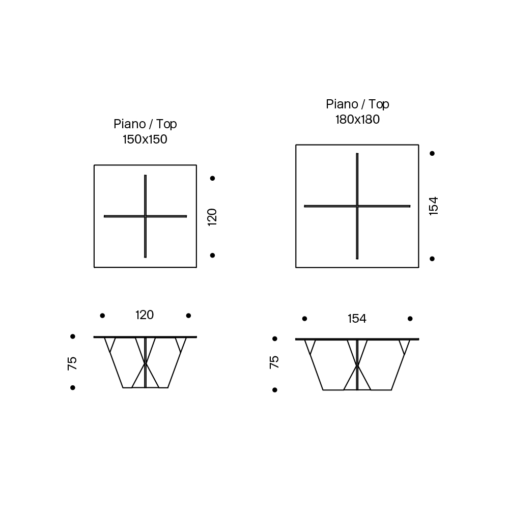 L 180 x P 180 x H 75 cm.