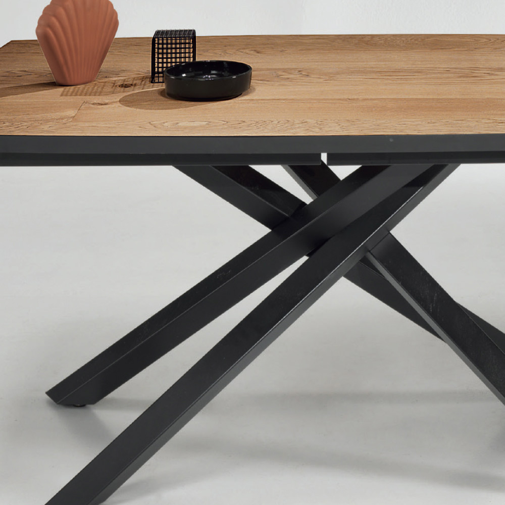 Table à manger avec plateau en bois de chêne plaqué Made in Italy.